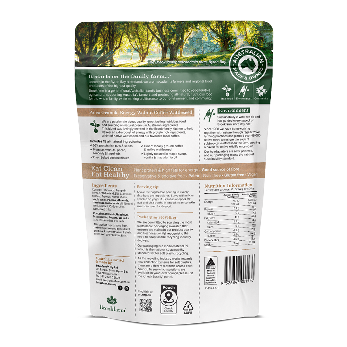 Brookfarm Energy Paleo Granola, Walnut, Coffee and Wattleseed