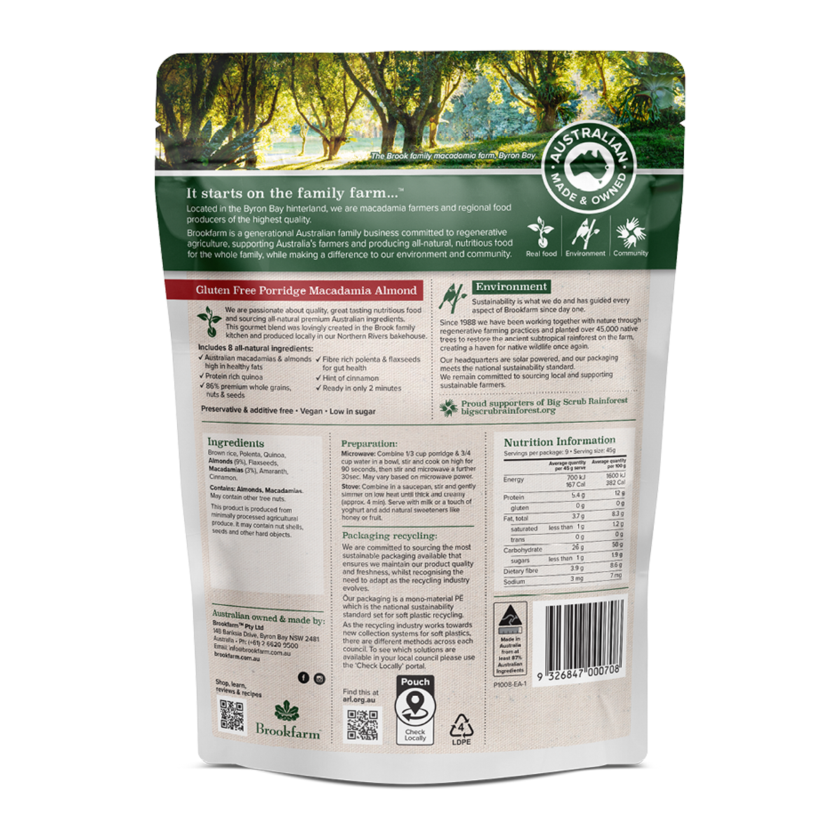 Start your day right with Brookfarm Gluten Free Porridge 400g! Crafted with care, this wholesome blend is bursting with natural goodness and flavor. Made with premium ingredients, it's rich in nutrients and perfect for a healthy breakfast. Enjoy a nourishing meal that will keep you energized all day. Order now!