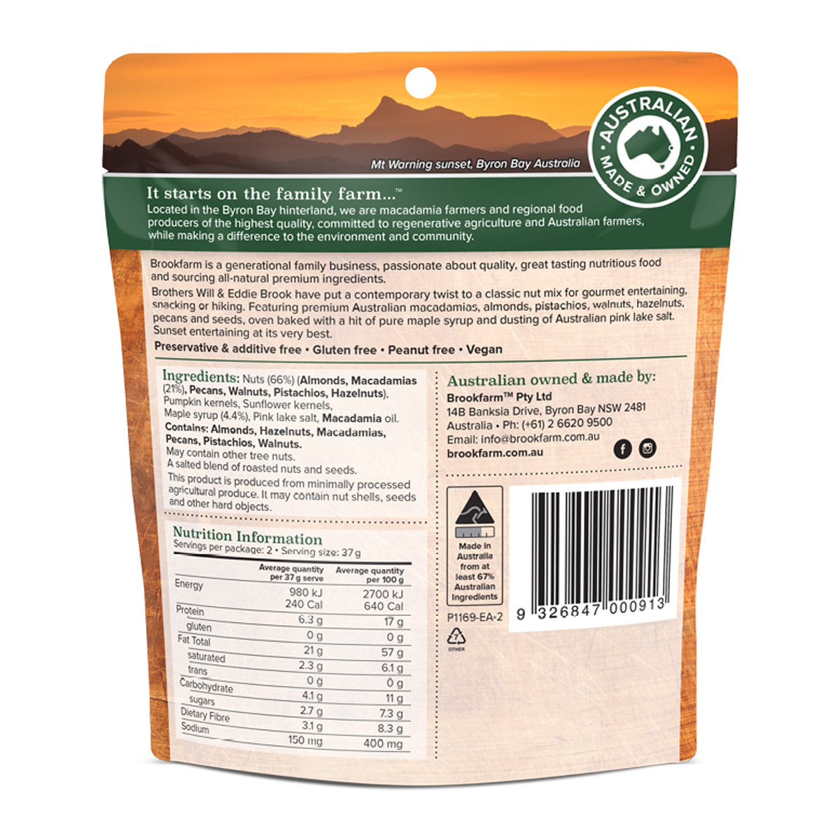 Indulge in the irresistible blend of Brookfarm Roasted Nuts Maple & Pink Lake Salt 75g. Savor the perfect balance of sweet maple and savory pink lake salt in every crunchy bite. Packed with premium quality nuts, this snack is a delicious source of energy and nutrients. Elevate your snacking experience with this gluten-free, non-GMO treat that is sure to satisfy your cravings.
