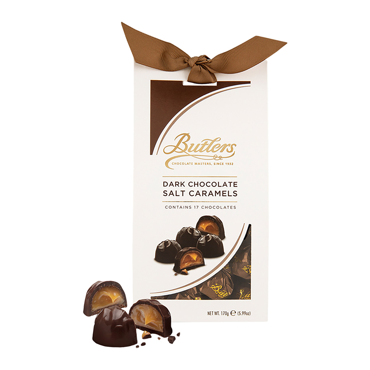 Indulge in Butlers Dark Chocolate Salted Caramels for a rich and decadent treat. Each bite offers a perfect balance of smooth dark chocolate and gooey salted caramel. Elevate your snacking experience with this 170g pack of irresistible delights.