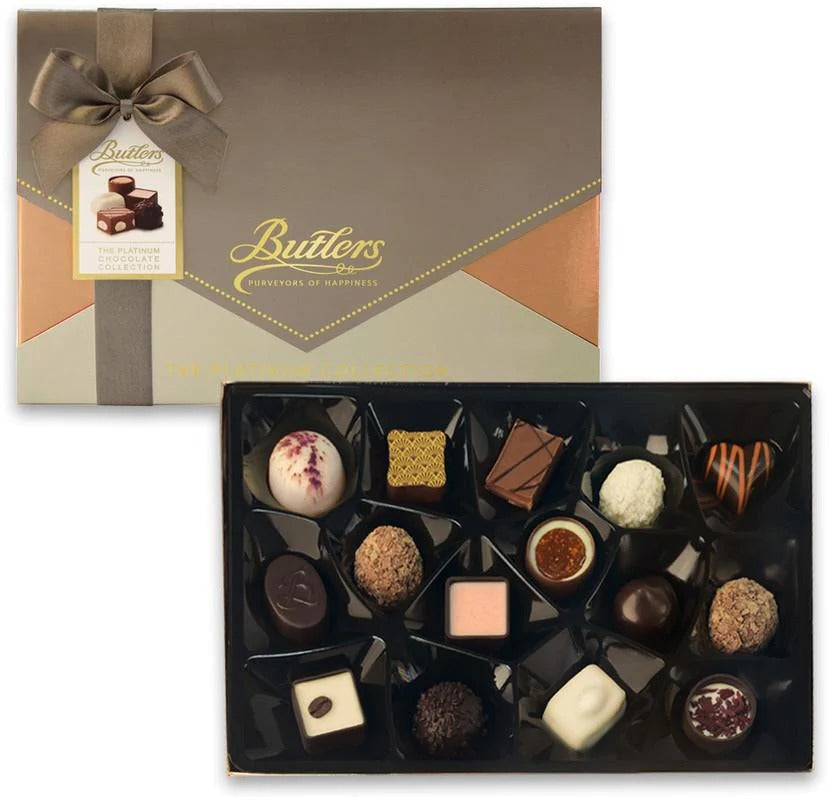 Indulge in luxury with Butler's Platinum Collection 210g. Elevate your taste buds with a selection of exquisite chocolates crafted with the finest ingredients. Perfect for gifting or treating yourself to a moment of pure bliss. Experience the ultimate in chocolate decadence with Butler's Platinum Collection 210g.