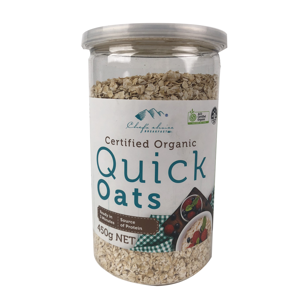 Fuel your day with Chef's Choice Organic Quick Oats 450g - a nutritious and convenient breakfast option packed with fiber and essential nutrients. Enjoy a hearty and wholesome meal in minutes, perfect for busy mornings. Elevate your breakfast game with these organic quick oats that are not only delicious but also support a healthy lifestyle. Order now for a delicious and satisfying start to your day!