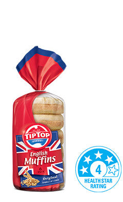 Start your day right with Tip Top English Muffins Original x6 400g! Bursting with freshness and flavor, these muffins are a breakfast essential. Made with quality ingredients, they are perfect for toasting and topping with your favorite spreads. Elevate your mornings with these delicious and wholesome English muffins. Order now!