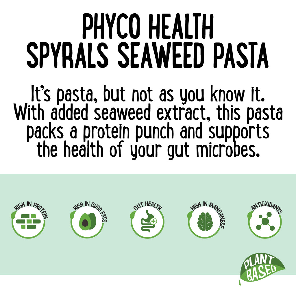 PhycoHealth Seaweed Pasta Sea Spirals 375g: Boost your health with our nutrient-rich seaweed pasta spirals. Packed with essential vitamins and minerals, this gluten-free superfood is a delicious way to support your well-being. Try it today for a tasty and nutritious meal option!