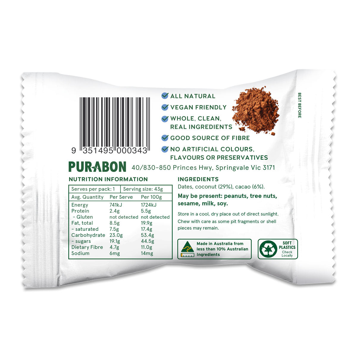 Indulge guilt-free with Purabon Wholefood Ball Coconut Cacao 43g. Packed with natural ingredients, this delicious snack provides a healthy energy boost on-the-go. Gluten-free and vegan-friendly, it's the perfect choice for a satisfying treat that nourishes your body.