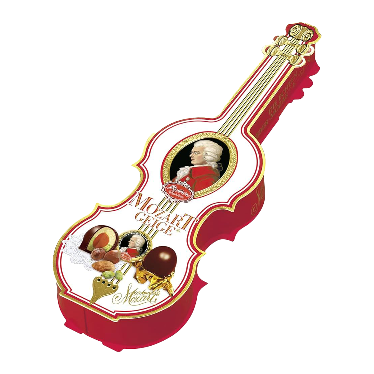 Indulge in the exquisite harmony of Reber Chocolate Mozart Violin x7 140g. Experience the rich blend of premium chocolate and marzipan, crafted to perfection. Elevate your taste buds with this luxurious treat, ideal for gifting or savoring yourself. Enjoy a symphony of flavors in every bite with Reber Chocolate Mozart Violin x7 140g.