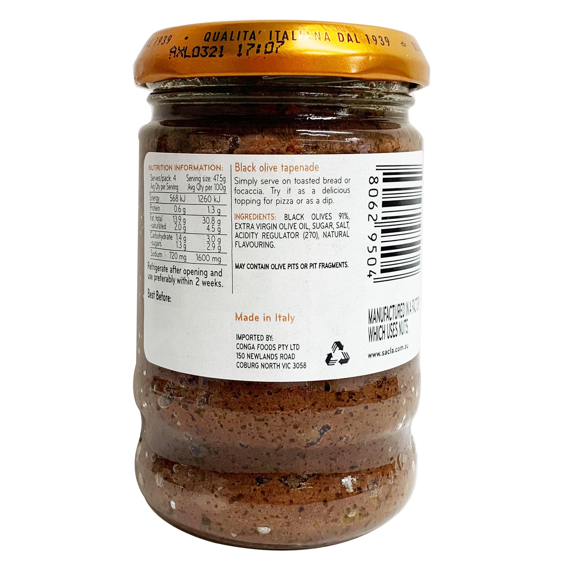 Sacla Tapenade Black Olive 190g: Elevate your dishes with this rich and flavorful black olive tapenade. Made with premium ingredients, it adds a burst of Mediterranean taste to your meals. Perfect for spreading on bread, crackers, or using as a dip. Enjoy the authentic taste of Italy with Sacla Tapenade Black Olive.