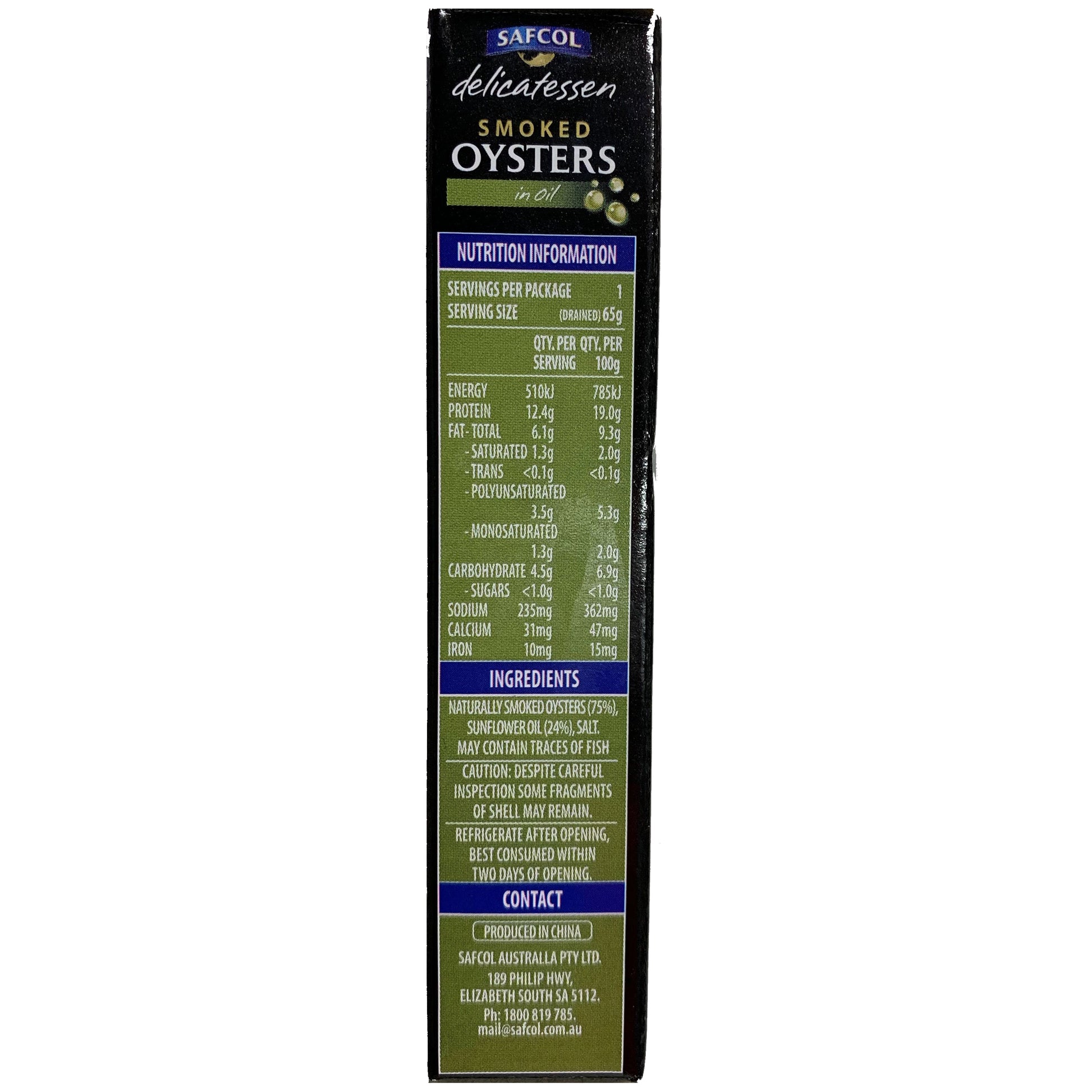 Safcol Smoked Oysters in Oil 85g: Indulge in rich, smoky flavor with our premium oysters. Packed in oil for freshness and convenience. Perfect for gourmet recipes or a quick, nutritious snack. Elevate your meals with Safcol's finest smoked oysters.
