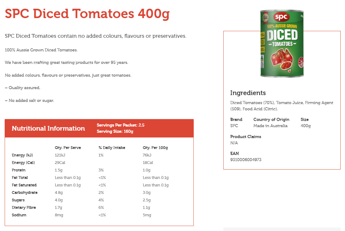 Discover the exceptional freshness and quality of SPC Diced Tomatoes 400g, sourced from the finest Australian farms. Bursting with the authentic taste of ripe tomatoes, these diced tomatoes are perfect for adding a touch of natural sweetness to your favorite recipes. Elevate your dishes with the pure goodness of locally-grown produce, ensuring every meal is filled with the essence of home-cooked comfort. Whether you're creating hearty stews, zesty pasta sauces, or vibrant salads, these tomatoes deliver unmatched flavor and quality every time. Trust in the heritage and dedication of SPC, a brand synonymous with premium ingredients and a commitment to supporting local growers. Embrace the essence of farm-fresh goodness in every bite with SPC Diced Tomatoes, the perfect pantry staple for all your culinary creations.
