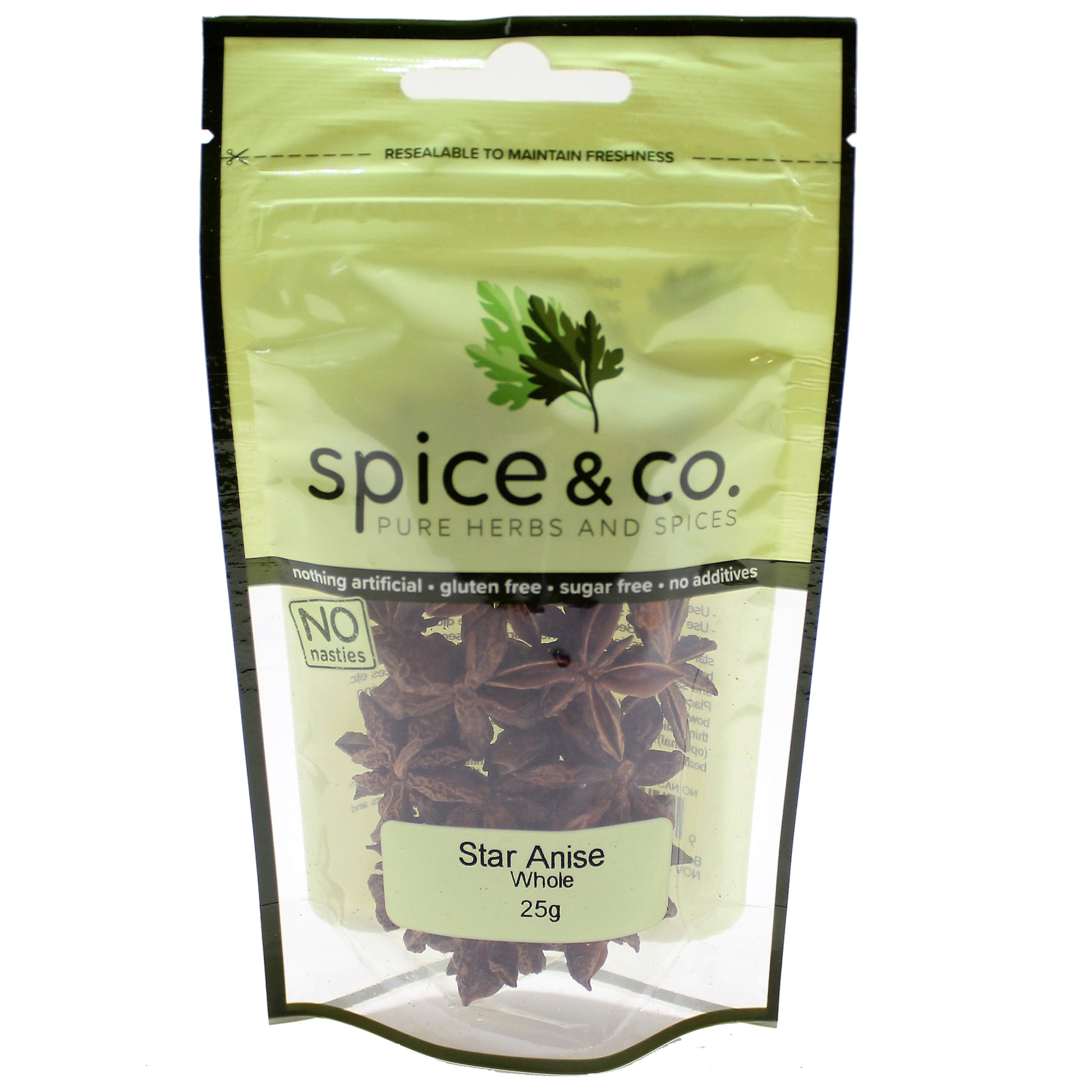 Spice up your dishes with the aromatic and flavorful Spice and Co Star Anise Whole 25g. Elevate your cooking with this premium ingredient that adds a unique and exotic taste to your recipes. Buy now for a burst of authentic flavor in every dish!