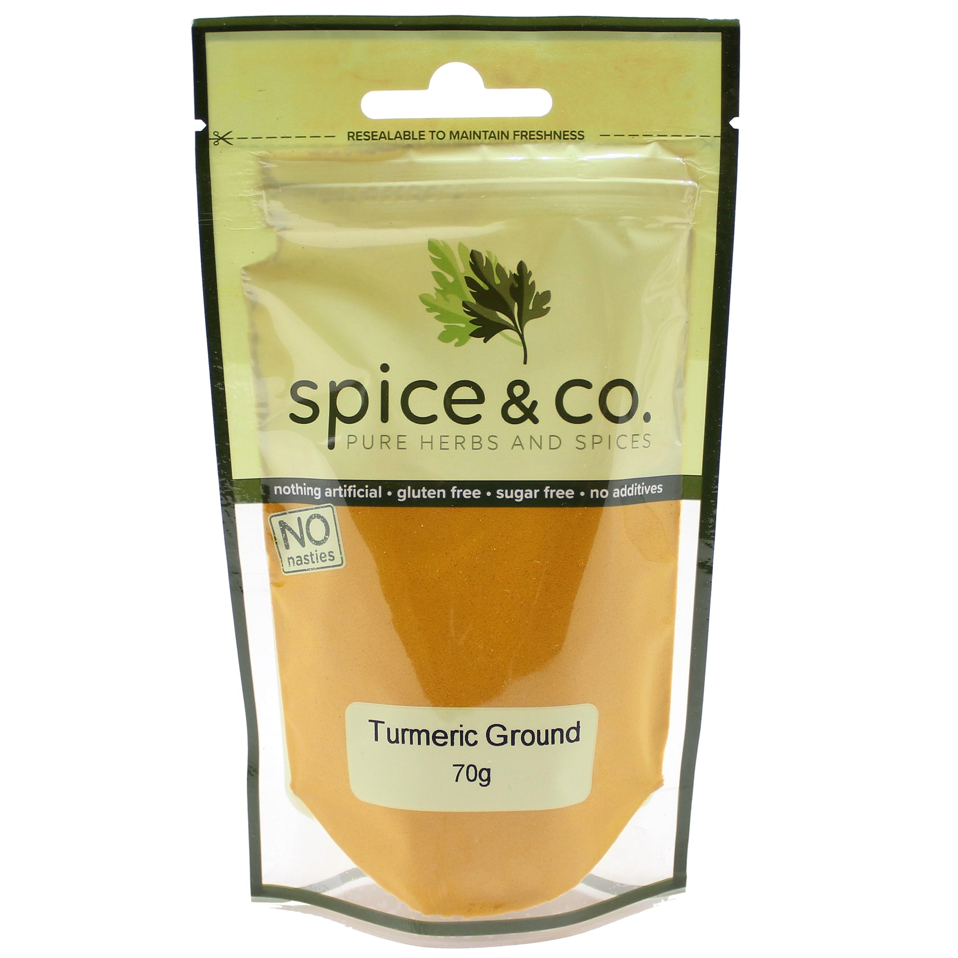 Elevate your culinary creations with Spice and Co's Turmeric Ground 70g, a vibrant addition to your spice collection. Sourced from the finest turmeric roots, this premium spice boasts unrivaled freshness and quality, ensuring a burst of authentic flavor in every dish. Proudly crafted with care and expertise, this ground turmeric carries the essence of its exotic origins, adding a touch of warmth and depth to your recipes. Whether you're preparing a fragrant curry, a golden latte, or a wholesome soup, this versatile spice is a must-have for both home cooks and professional chefs alike. Embrace the richness of this golden gem and infuse your dishes with the essence of tradition and quality that Spice and Co is renowned for.