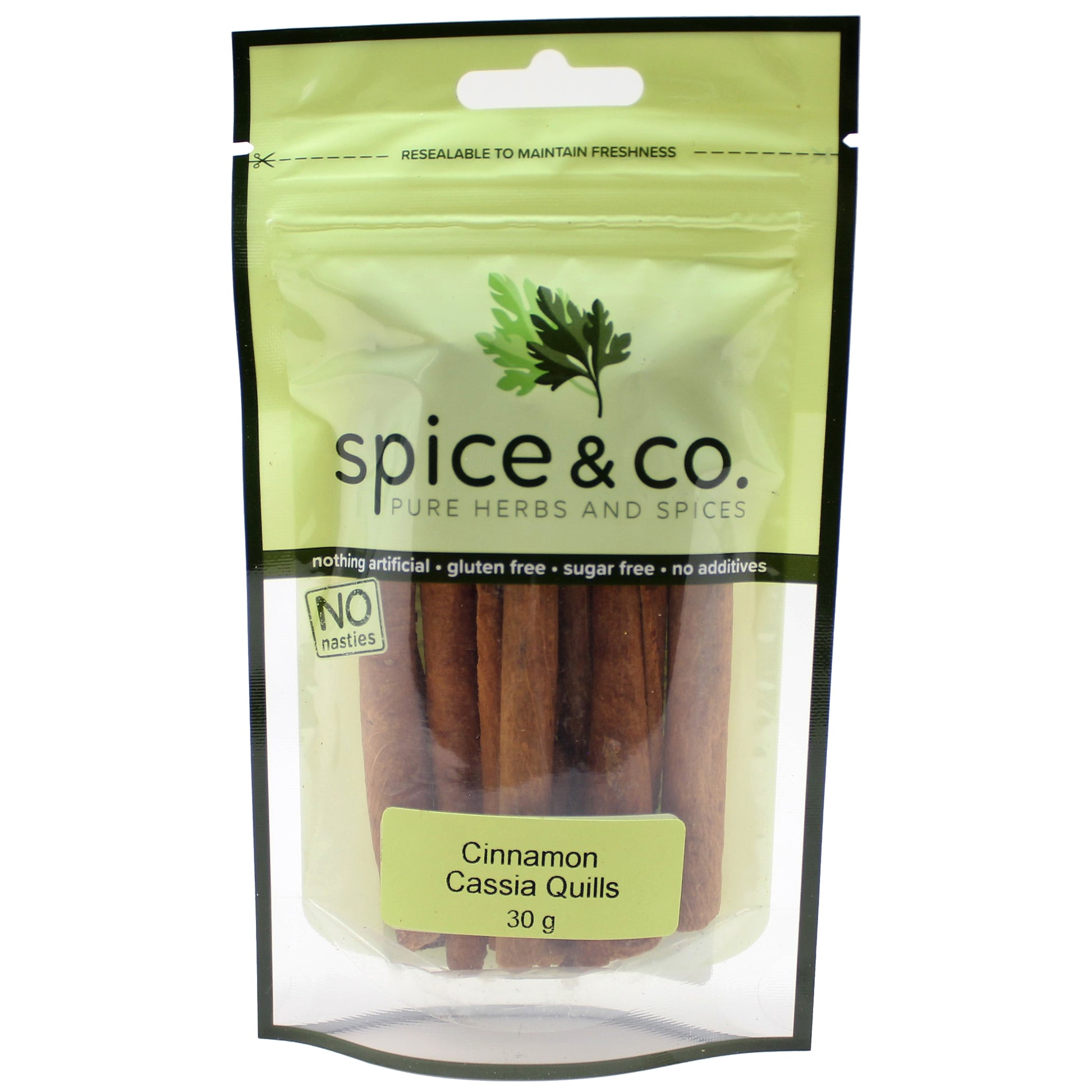 Experience the aromatic delight of Spice and Co Cinnamon Cassia Quills 30g. Harvested at peak freshness, these premium quills are bursting with natural goodness and rich flavor. Elevate your culinary creations with the finest quality cinnamon, known for its health benefits. Add warmth and depth to your dishes today.