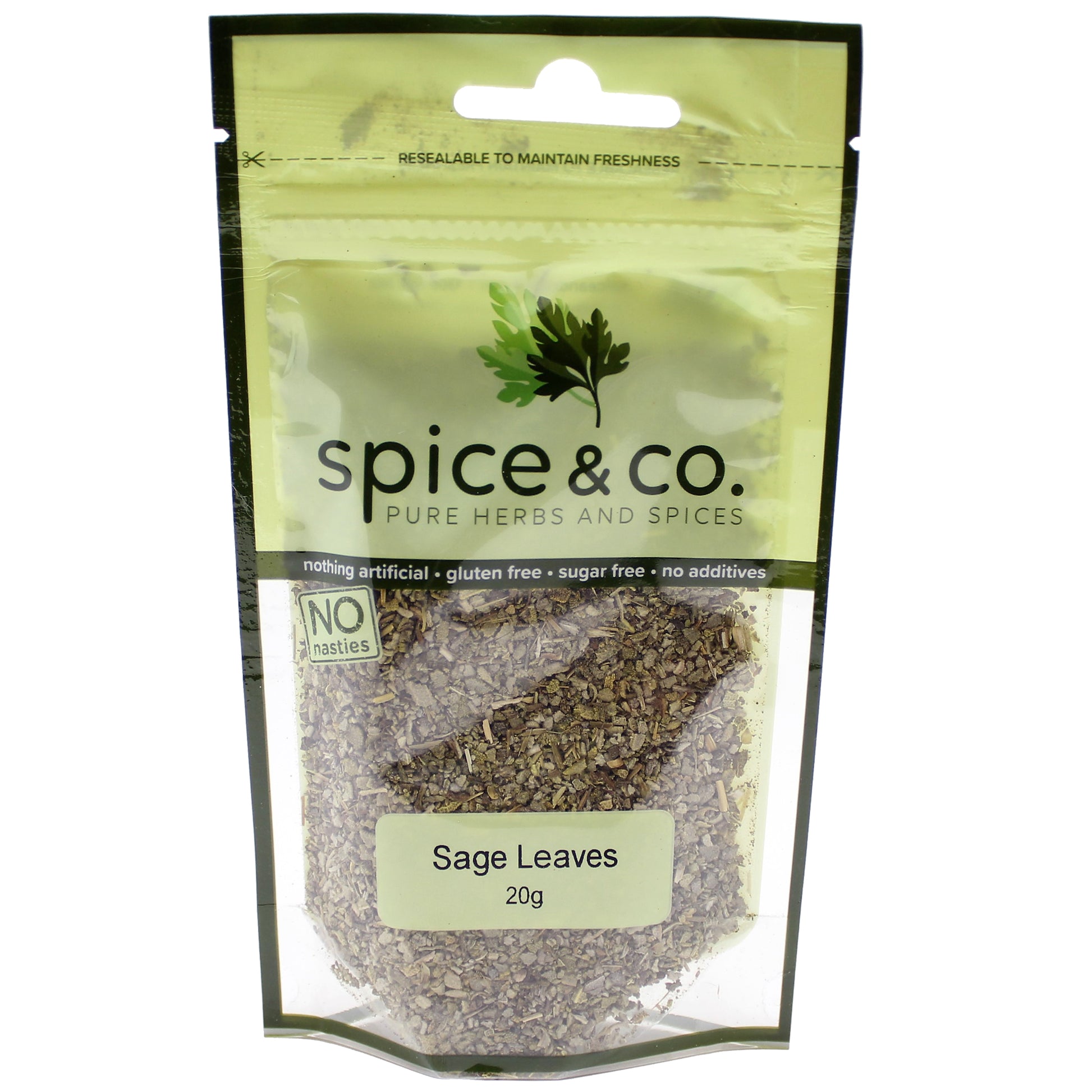 Elevate your culinary creations with Spice and Co Sage Leaves 20g. Harvested at peak freshness, these aromatic leaves are bursting with natural goodness and robust flavor. Enhance your dishes with the earthy notes of sage, perfect for meats, sauces, and more. Elevate your cooking experience today with Spice and Co!
