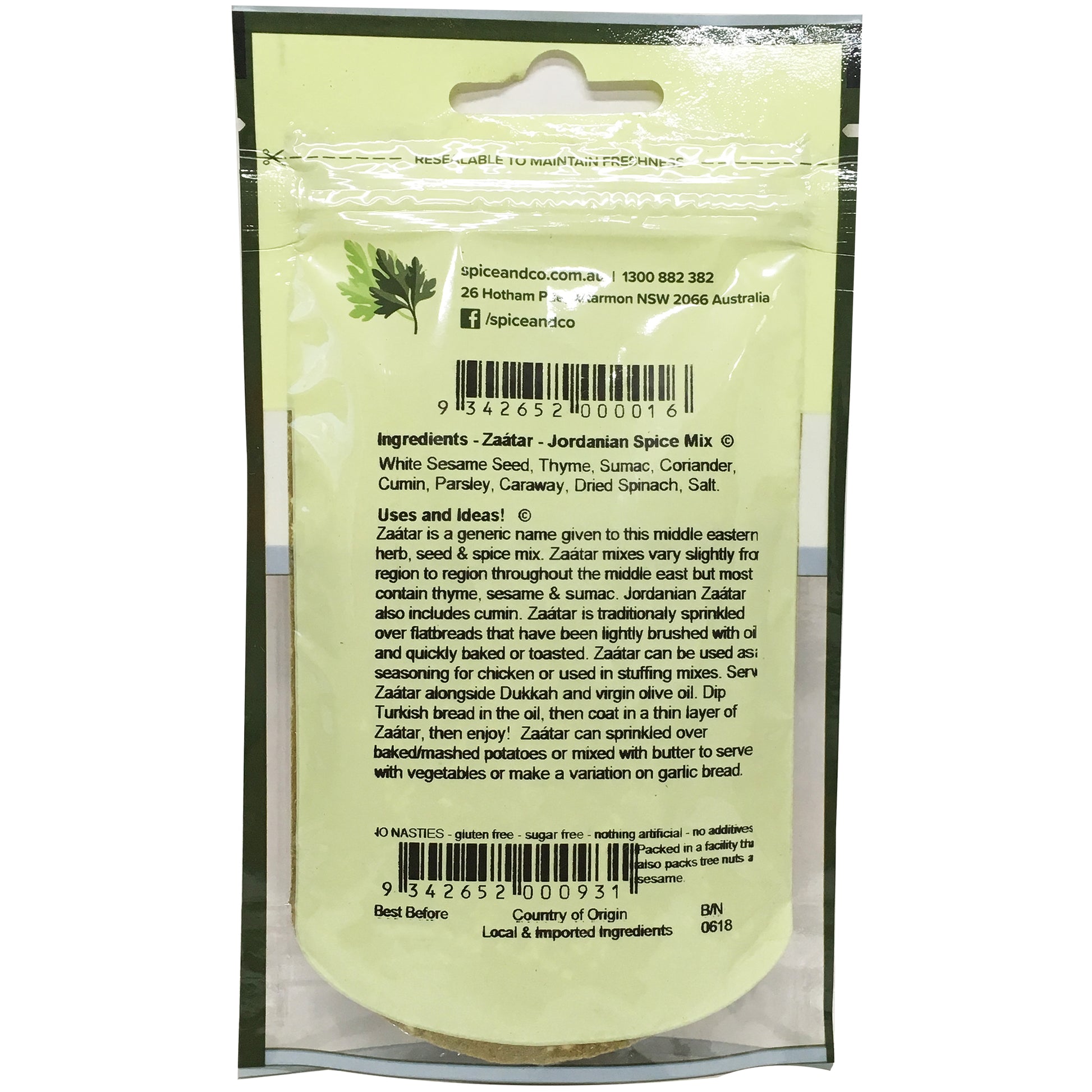 Elevate your culinary creations with Spice and Co's Zataar Spice Mix 40g, a blend that captures the essence of the Mediterranean. Freshly sourced herbs and spices from the finest origins ensure a burst of authentic flavors in every sprinkle. Crafted with a commitment to quality, this zataar mix adds a touch of Middle Eastern charm to your dishes, perfect for family gatherings, cozy dinners, or casual brunches. Let the rich provenance and premium quality of this spice mix transport you to sun-kissed lands with each bite. Trust in Spice and Co to bring you the best, straight from Harris Farm Markets to your kitchen.