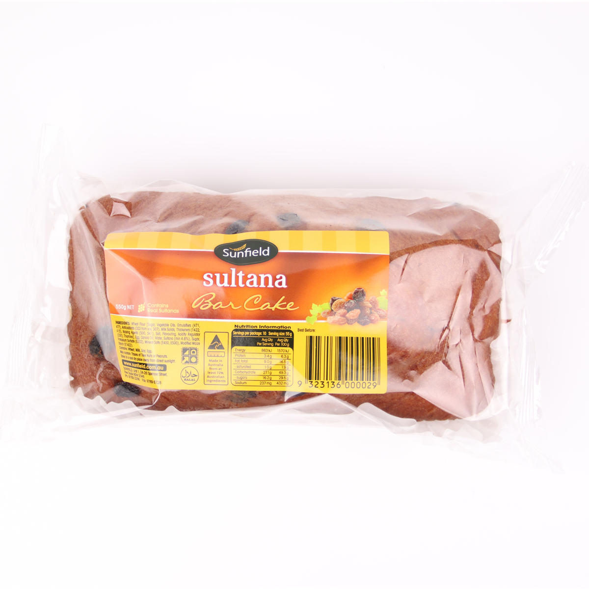 Indulge in the rich and fruity flavors of Sunfield Bread Sultana Bar Cake 550g. Made with premium ingredients, this moist and delicious cake is perfect for any occasion. Treat yourself to a slice of pure delight with every bite. Order now and experience a taste sensation like no other!