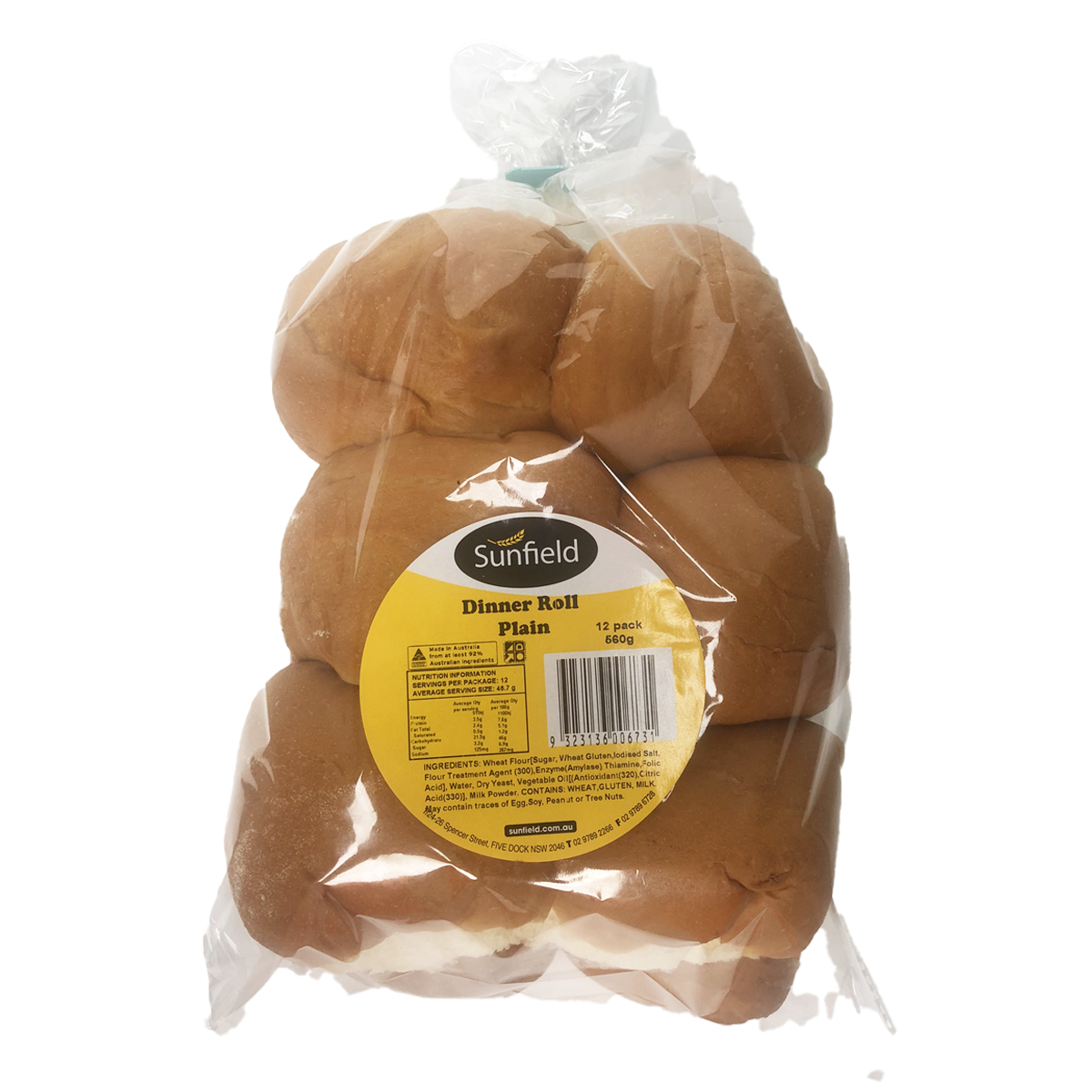 Enjoy the fluffy and delicious Sunfield Dinner Roll Plain x12 560g for a perfect addition to any meal. These soft and freshly baked dinner rolls are sure to elevate your dining experience. Perfect for sharing with family and friends, these rolls are a must-have for any occasion.