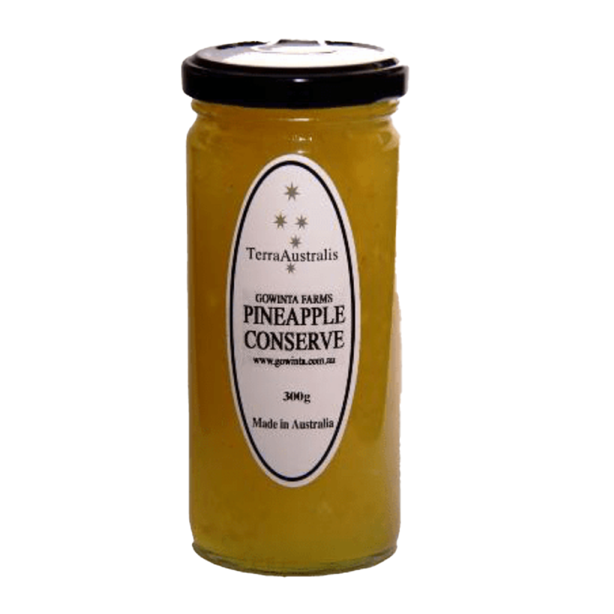 Terra Australis Pineapple Conserve 300g: Indulge in the tropical sweetness of ripe pineapples with our all-natural conserve. Perfect for spreading on toast, pastries, or pairing with your favorite cheeses. Elevate your breakfast or snack time with a taste of paradise.