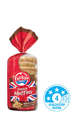 Start your day right with Tip Top English Muffins Wholemeal x6 400g! Made with premium wholemeal flour, these muffins are bursting with freshness and packed with fiber for a wholesome breakfast. Enjoy the delicious flavor and quality of Tip Top products. Elevate your mornings with these nutritious muffins today!