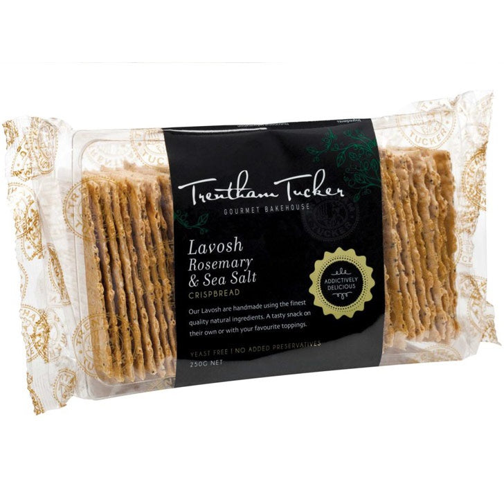 Trentham Tucker Rosemary and Sea Salt Lavosh 250g: Indulge in the perfect blend of aromatic rosemary and savory sea salt with our crispy, artisanal lavosh. Elevate your snacking experience with every bite of this irresistible, handcrafted treat. Ideal for entertaining or enjoying on your own, our lavosh is a must-have for any gourmet pantry.