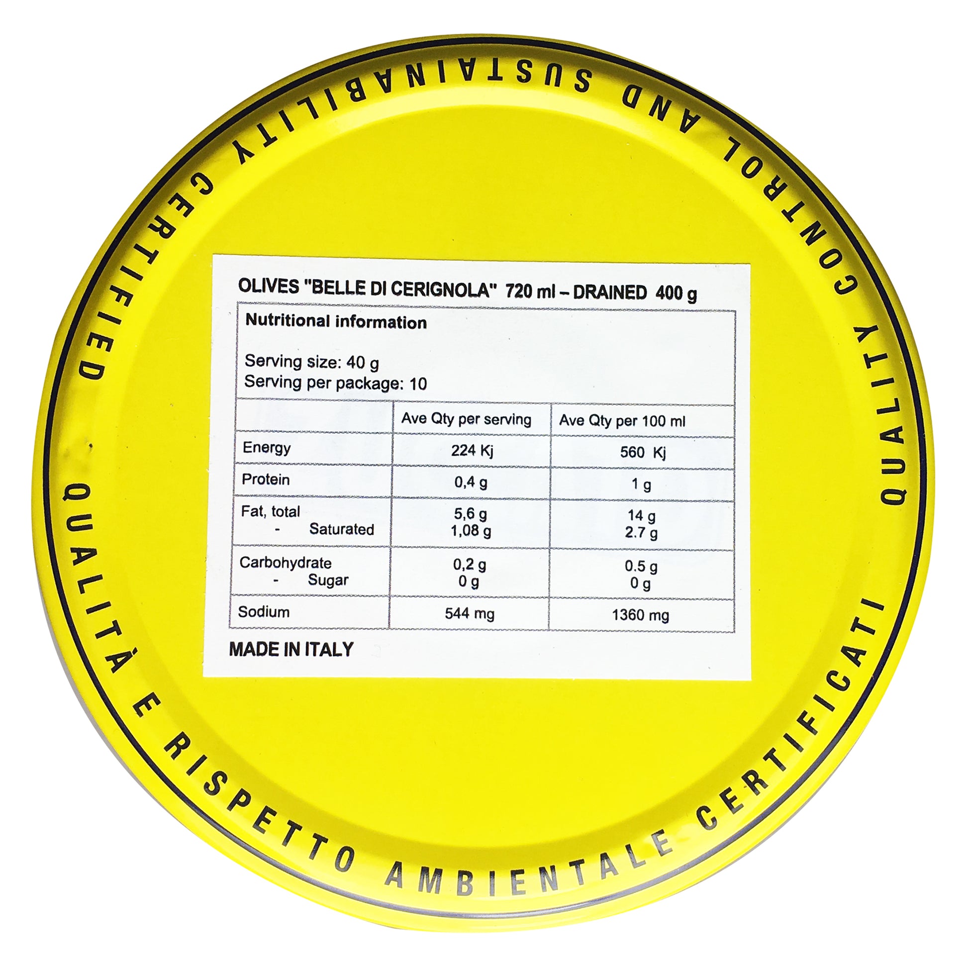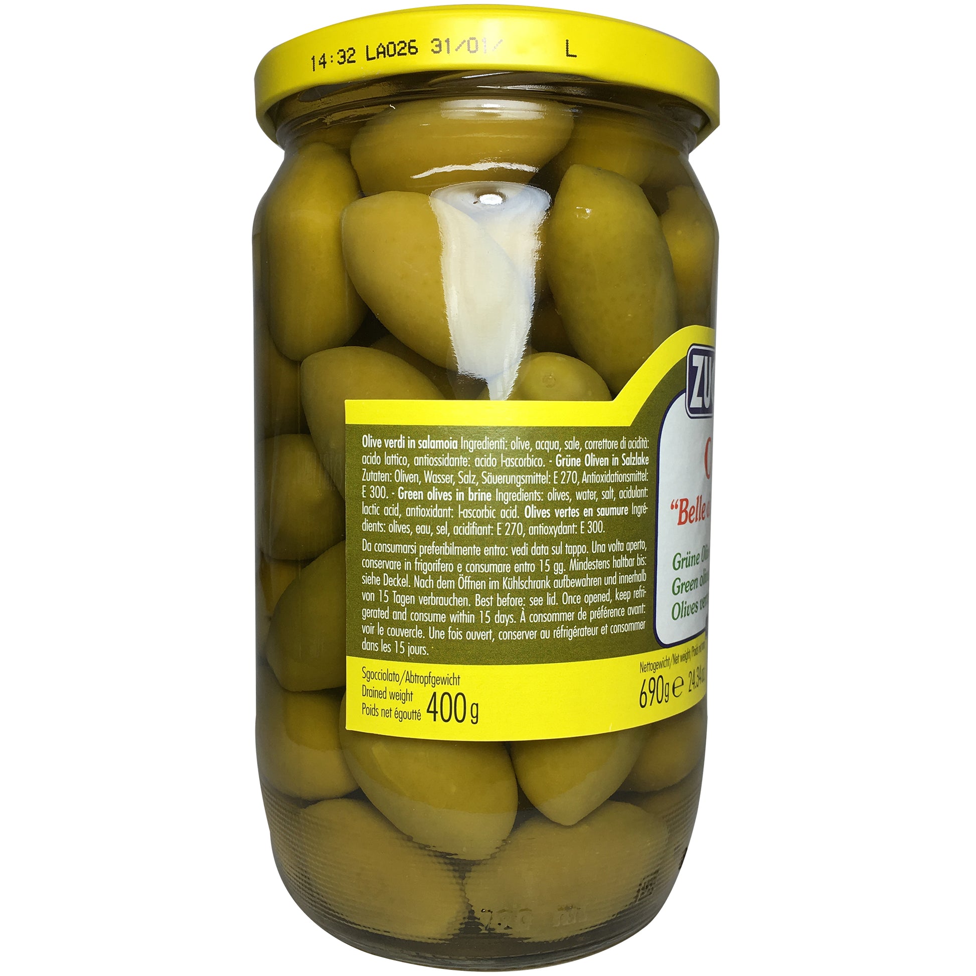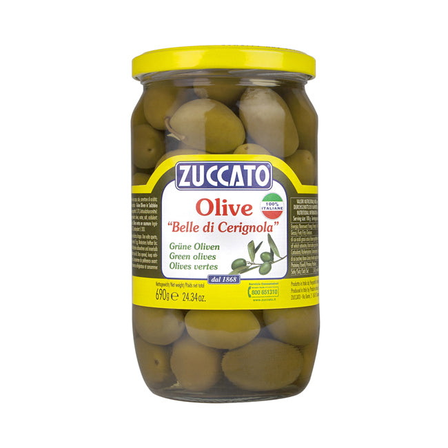 Zuccato Green Olives Belle Di Cerignola 690g: Indulge in plump, flavorful olives imported from Italy. Perfect for salads, appetizers, or snacking. Elevate your dishes with these premium olives packed with authentic Mediterranean taste.