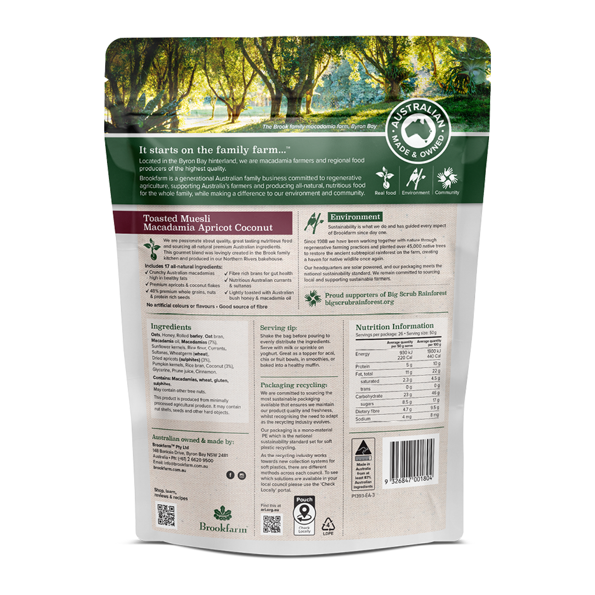 Brookfarm Apricots Coconut Macadamia Toasted Muesli
