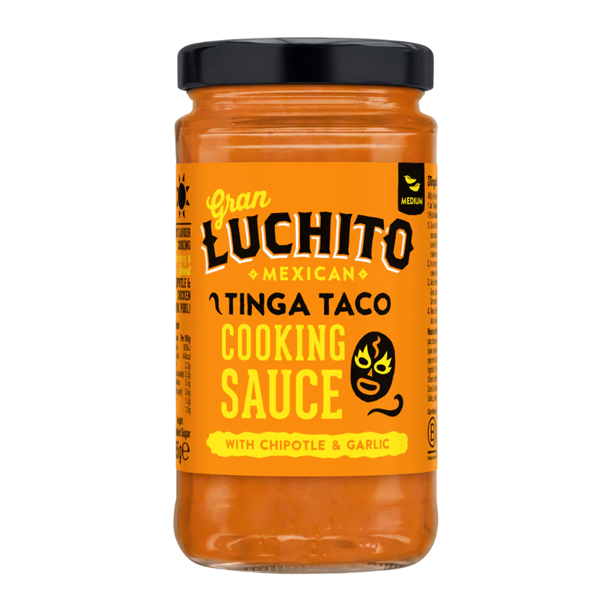 Gran Luchito Tinga Taco Cooking Sauce 355g: Elevate your taco game with our authentic Tinga Taco Cooking Sauce. Made with the finest ingredients, this smoky and spicy sauce will transport your taste buds to the streets of Mexico. Simply cook, shred, and enjoy delicious tacos in minutes. Add a touch of Mexican flair to your meals with Gran Luchito Tinga Taco Cooking Sauce.