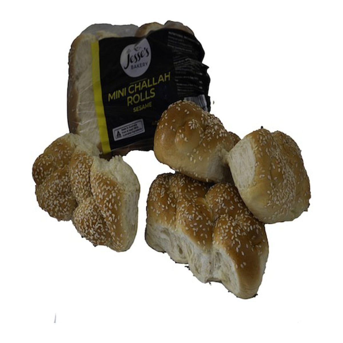 Delight in the perfect blend of sweetness and nuttiness with Jesse's Mini Sesame Challah Rolls. Baked to golden perfection, these 400g rolls are ideal for a quick snack or to complement any meal. Elevate your dining experience with these irresistible treats.