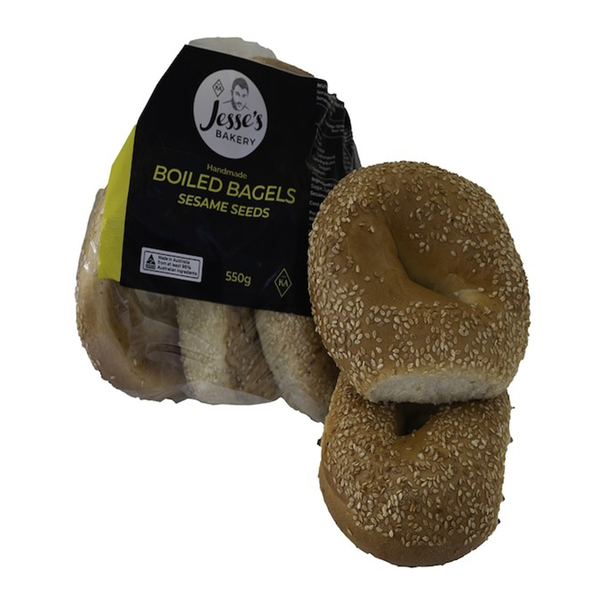 Jesse's Sesame Bagels 550g: Enjoy the perfect blend of soft, chewy texture and rich sesame flavor in every bite. Elevate your breakfast or snack time with these delicious, freshly baked bagels. Order now for a delightful culinary experience!
