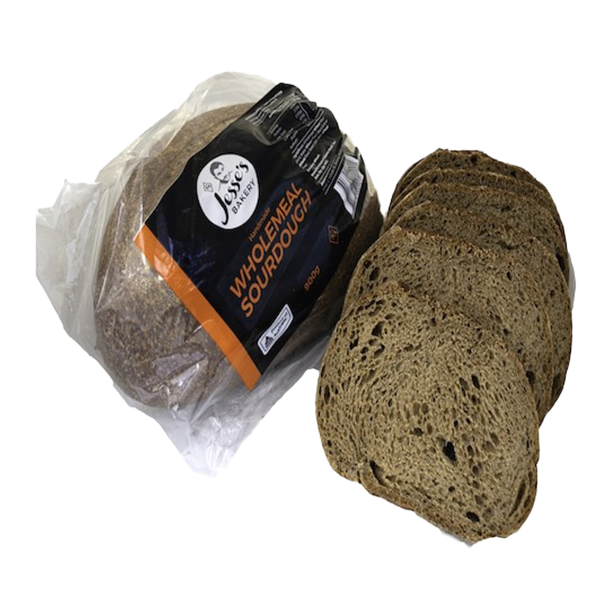 Jesse's Sourdough Wholemeal Bread 900g: Enjoy the wholesome goodness of freshly baked sourdough bread, made with premium wholemeal flour for a nutritious and delicious treat. Perfect for a healthy breakfast or hearty sandwich, this bread is sure to satisfy your cravings while providing essential nutrients. Order now for a delightful homemade taste in every bite!