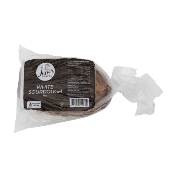 Jesse's White Sourdough Bread 900g: Enjoy the perfect balance of tangy flavor and fluffy texture with every bite of our artisanal sourdough bread. Made with premium ingredients and baked to perfection, this bread is a delicious addition to any meal. Taste the difference with Jesse's White Sourdough Bread today!