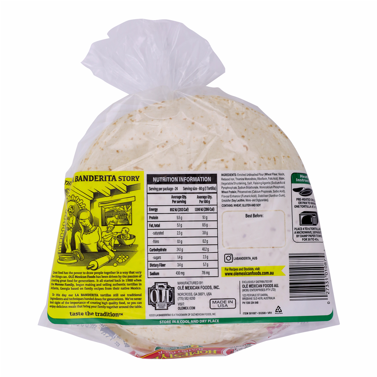 La Banderita Soft Taco Jumbo Pack x24 1.4kg offers the perfect solution for your taco nights with family and friends. Enjoy the convenience of having 24 soft and delicious taco shells ready to fill with your favorite ingredients. Make meal prep a breeze and savor the authentic taste of Mexico with La Banderita Soft Taco Jumbo Pack.