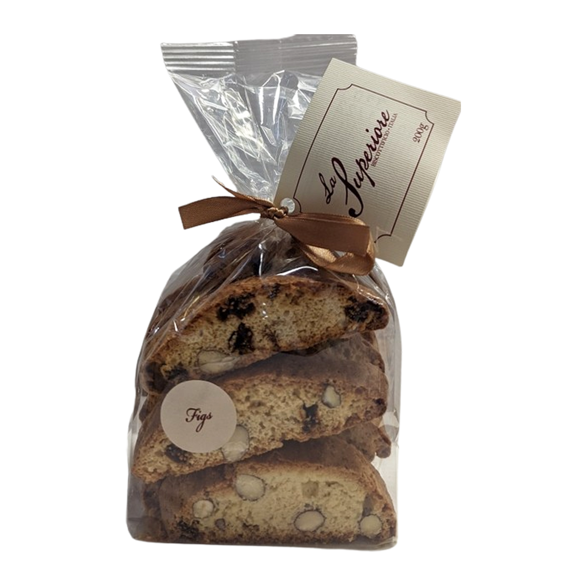 Indulge in the exquisite blend of sweet figs and crunchy almonds with La Superiore Cantucci Fig & Almond Biscuits. Perfect for a delightful treat or a thoughtful gift. Enjoy the authentic taste of Italy in every bite.
