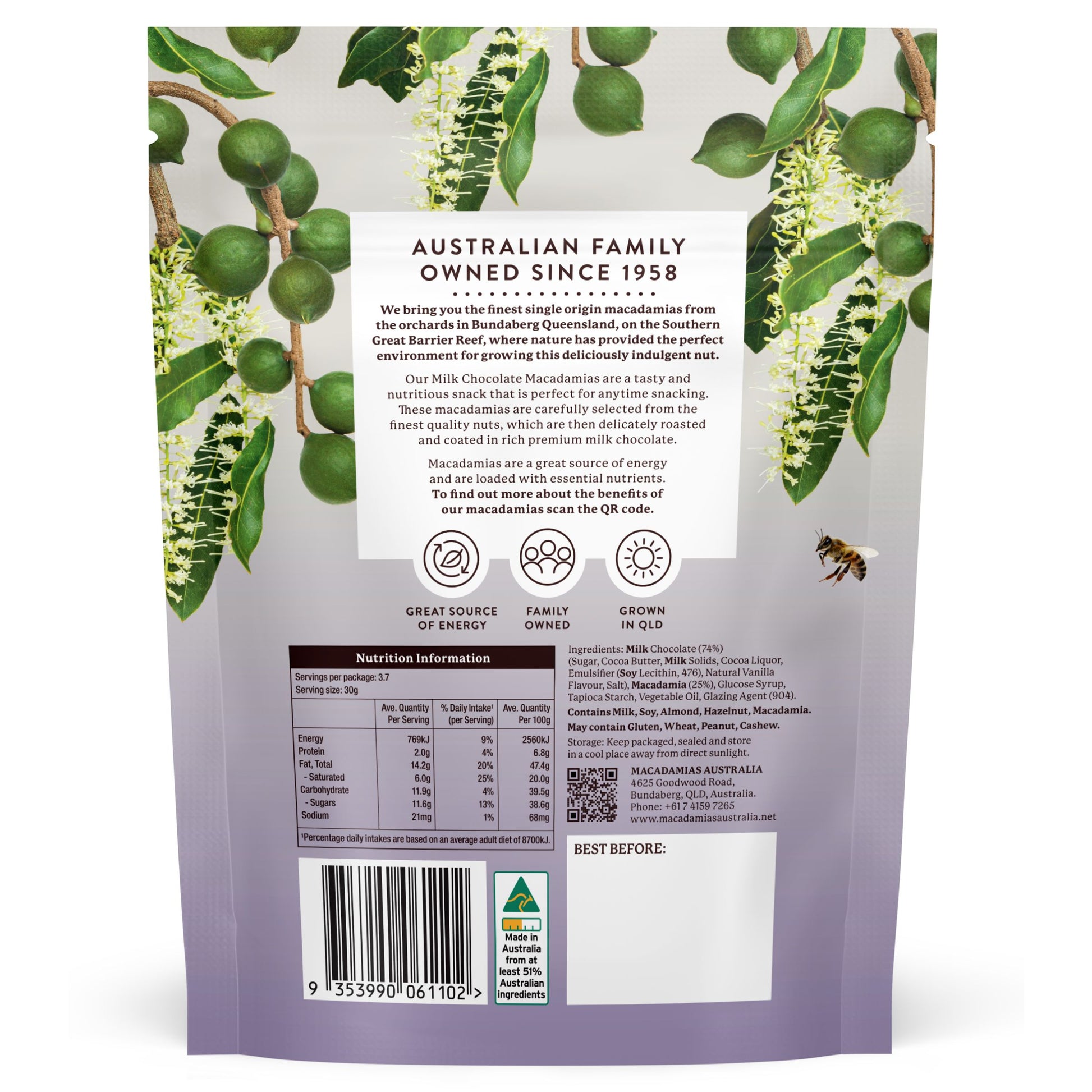 Macadamias Australia Milk Chocolate Macadamia 110g