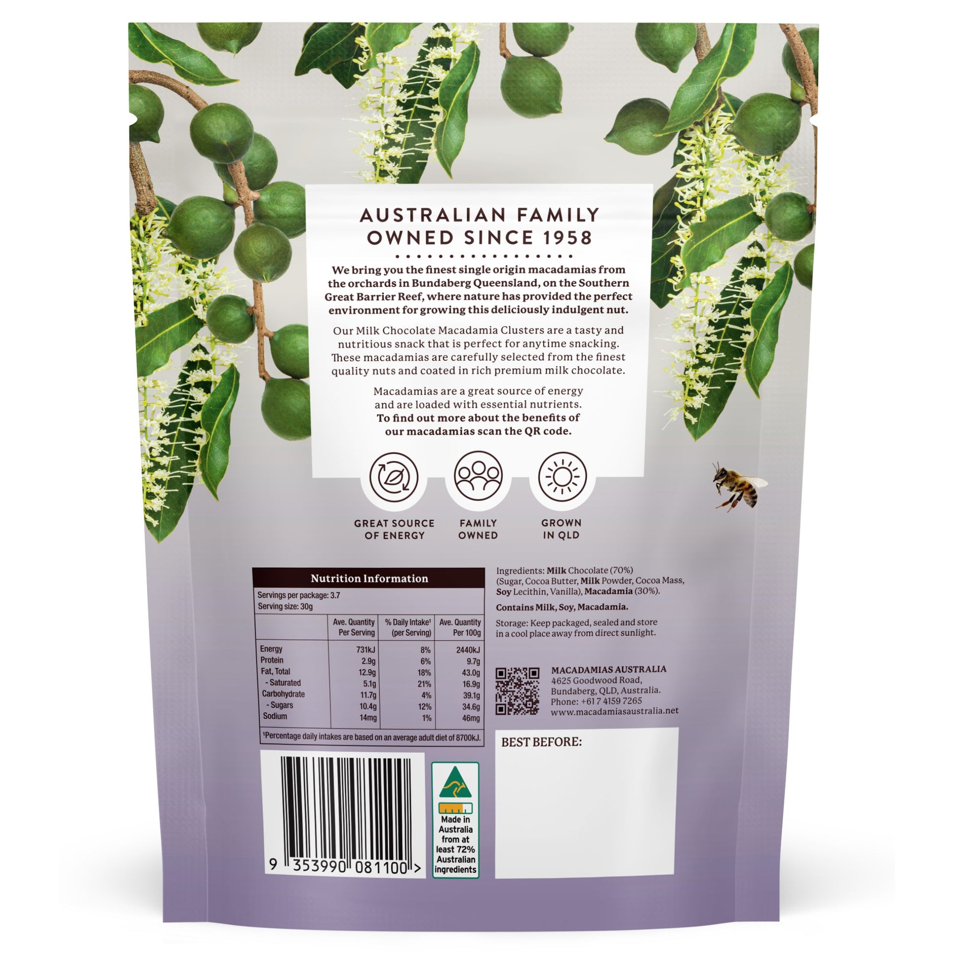 Macadamias Australia Milk Chocolate Macadamia Clusters 110g