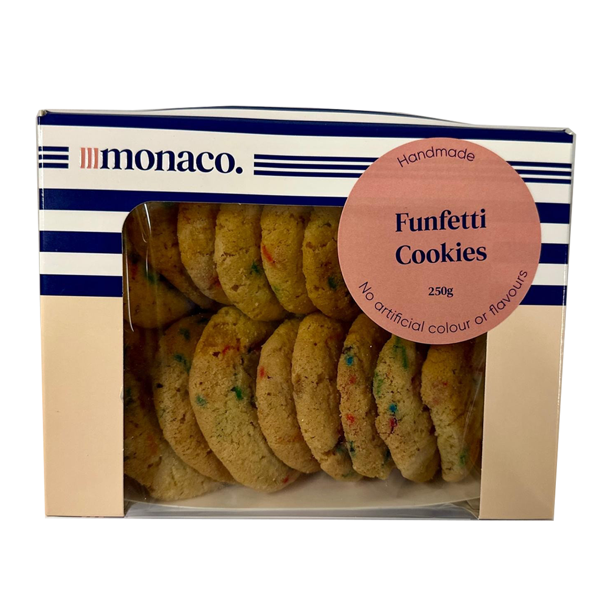 Indulge in the delightful sweetness of Monaco Funfetti Cookies! These colorful treats are perfect for adding a touch of fun to any occasion. With a generous 250g pack, you can enjoy these delicious cookies with family and friends. Order now and treat your taste buds to a burst of flavor!