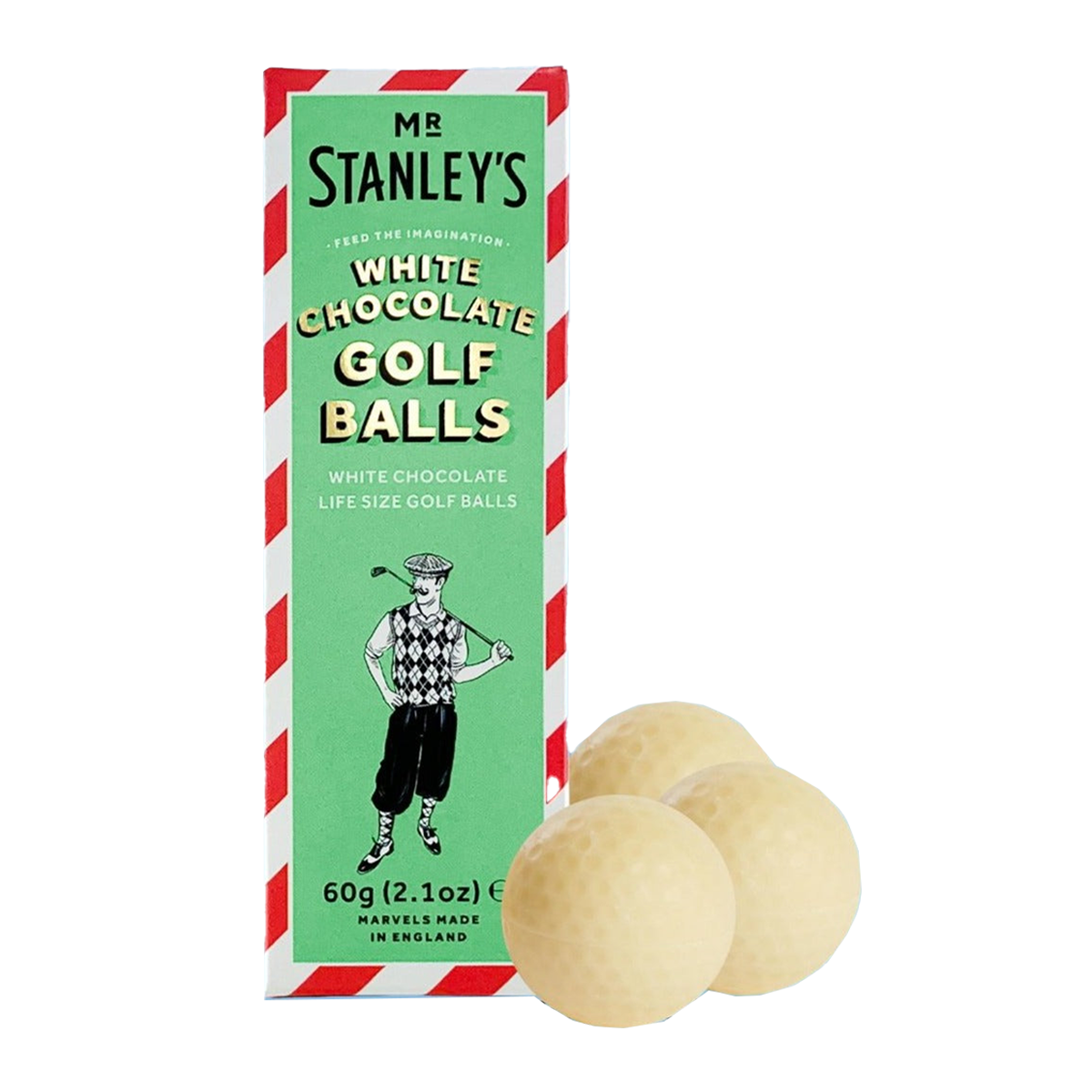 Indulge in Mr. Stanley's White Chocolate Golf Balls for a sweet treat on the green. These delicious 60g golf balls are perfect for satisfying your cravings while enjoying a round of golf. Made with premium white chocolate, they are a delightful snack for any golfer.