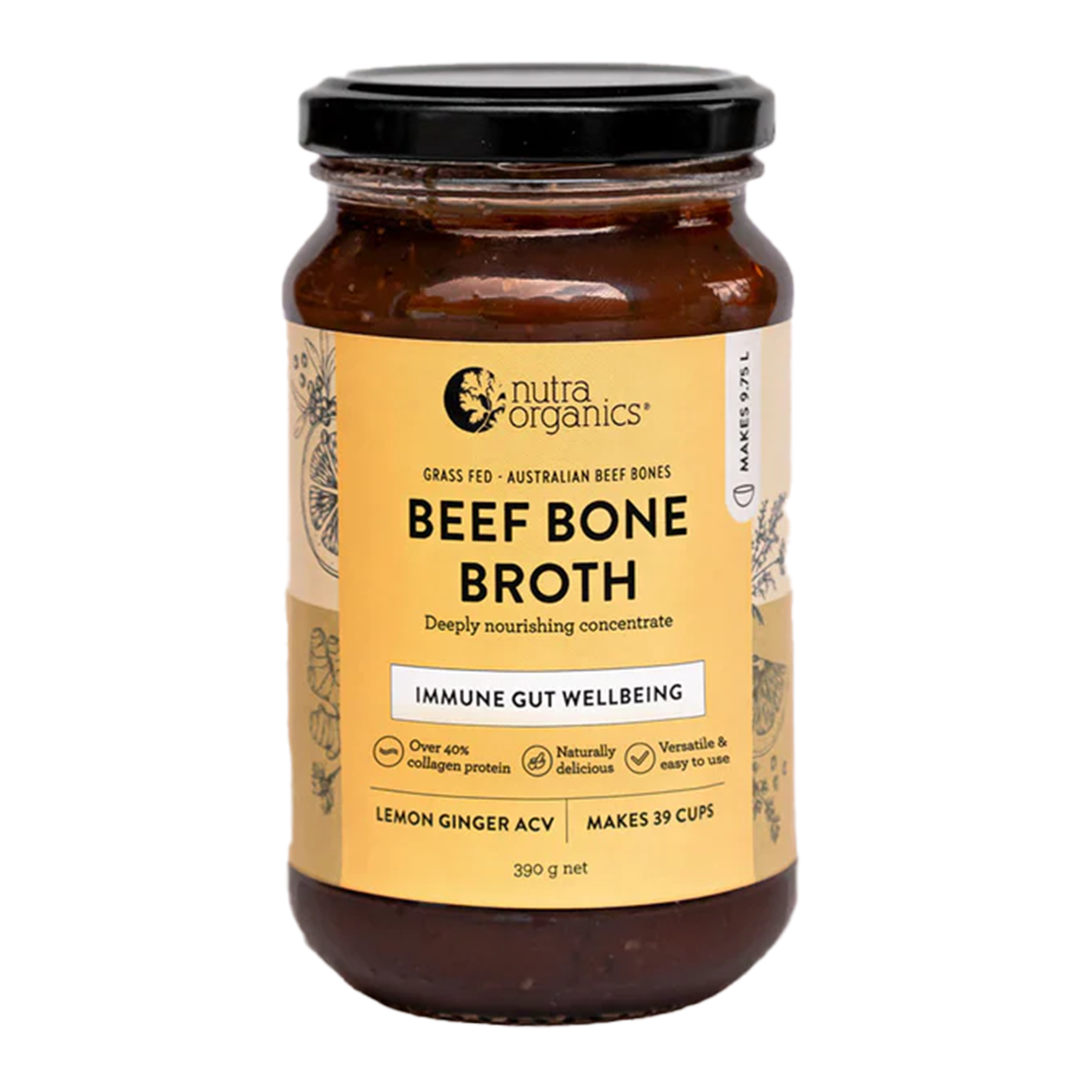 Nutra Organics Beef Bone Broth Lemon and Ginger 390g