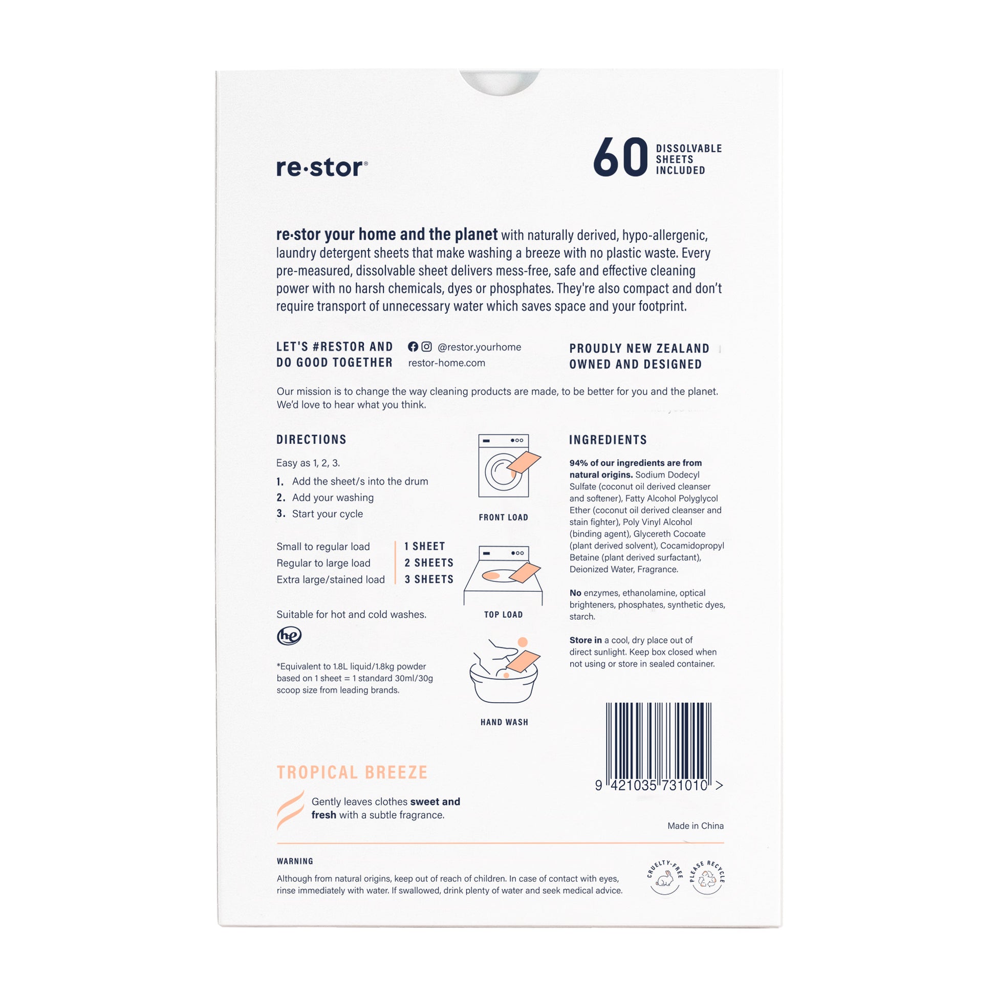 Restor Concentrated Laundry Detergent Sheets Tropical x60