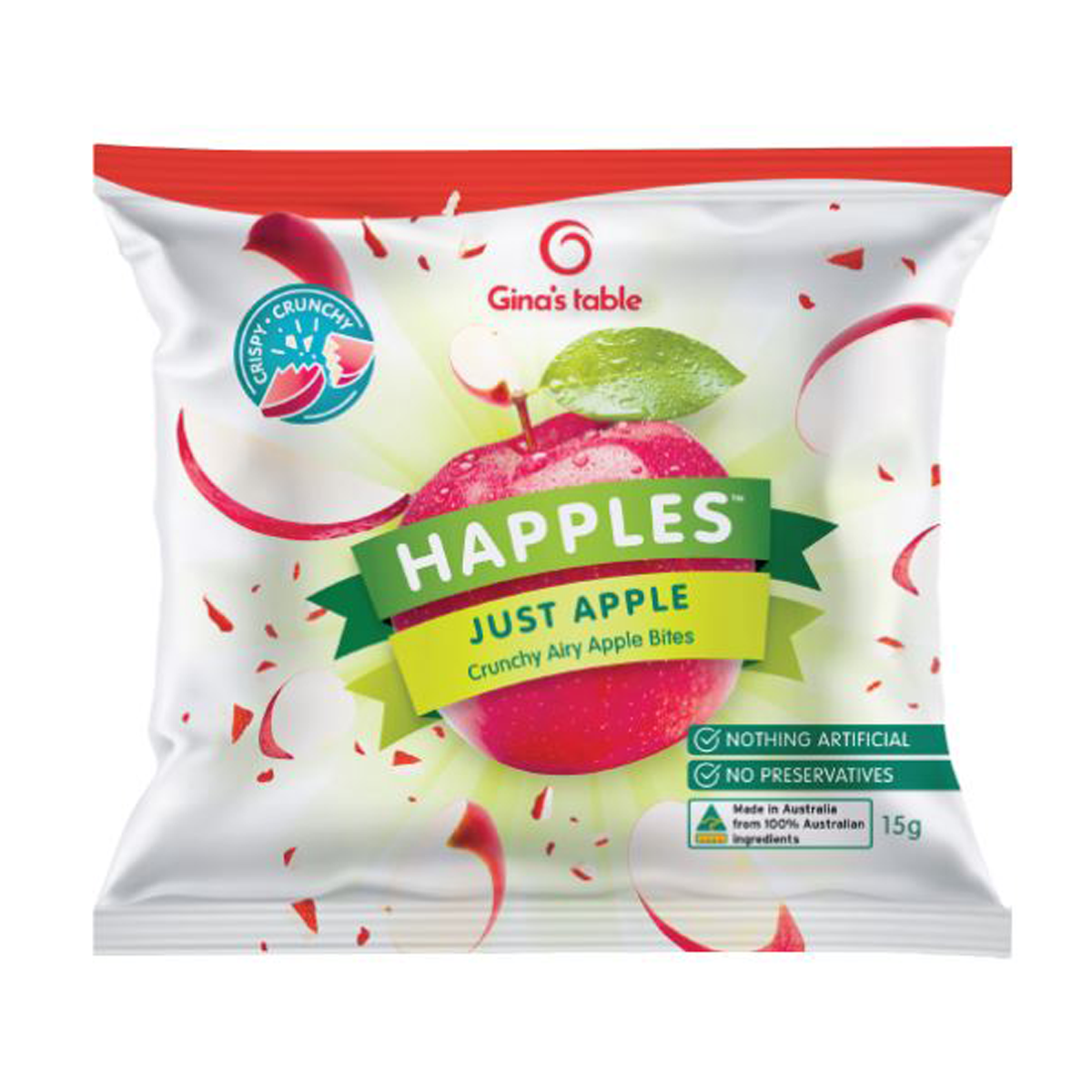 Gina's Table Happles Just Apple 15g: Enjoy the natural sweetness of real apples in every bite. Perfect for on-the-go snacking or adding a burst of flavor to your favorite dishes. Gluten-free and packed with vitamins. Upgrade your snacking game with Gina's Table Happles Just Apple 15g.