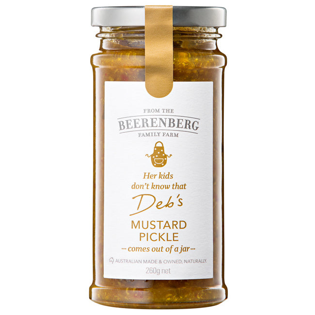 Beerenberg Mustard Pickle 260g: Elevate your meals with this tangy and flavorful condiment. Made with premium ingredients, this versatile mustard pickle adds a delicious twist to sandwiches, burgers, and more. Upgrade your culinary creations with Beerenberg Mustard Pickle today!