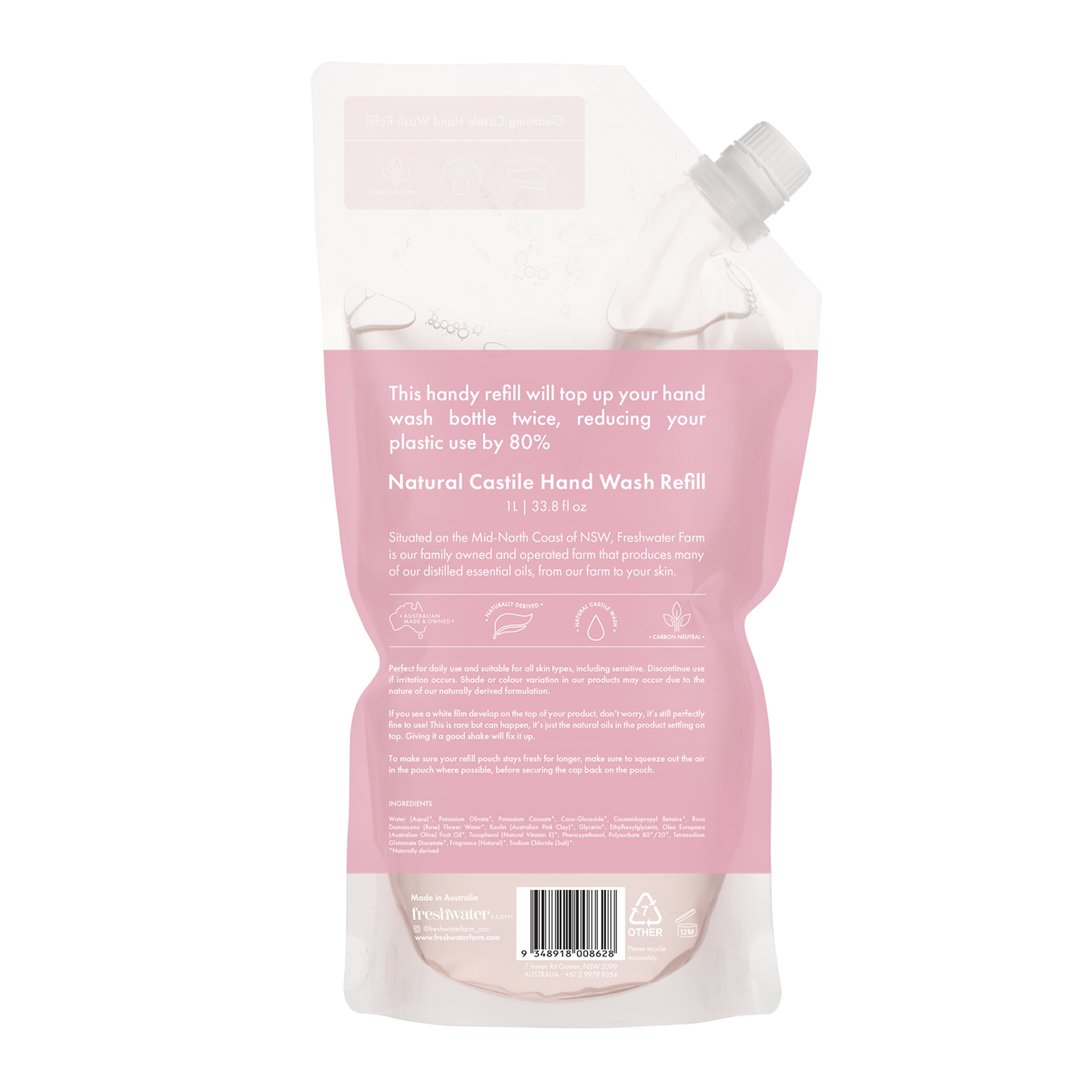 Our Freshwater Farm Rosewater and Pink Clay Handwash Refill 1L is a luxurious and eco-friendly solution for keeping your hands clean and moisturized. Infused with the delicate scent of rosewater and enriched with pink clay, this refill not only nourishes your skin but also helps reduce waste by refilling your existing handwash bottle. Say goodbye to dry hands and hello to a sustainable and refreshing handwashing experience with our 1L refill pack.
