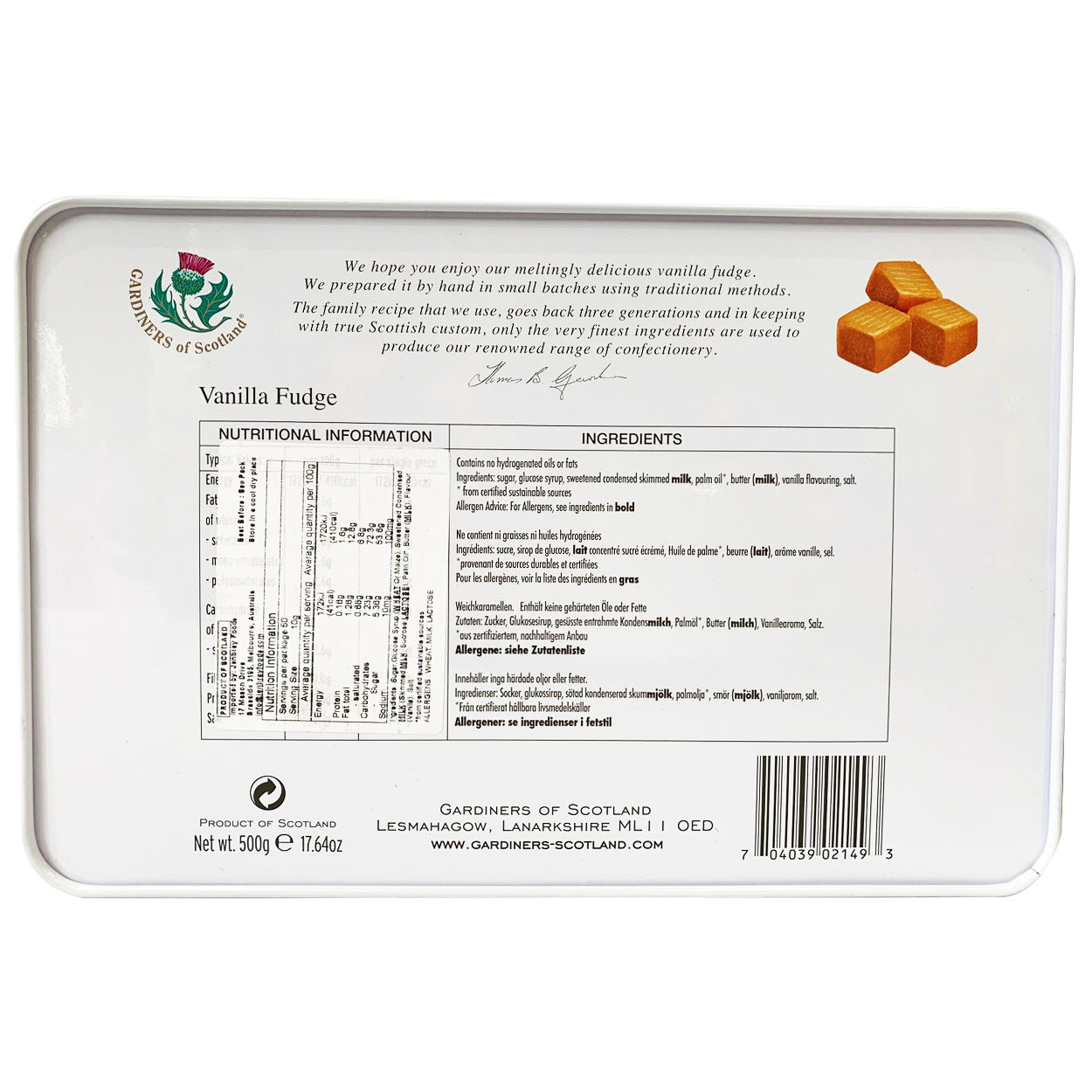 Indulge in the rich and creamy taste of Gardiners of Scotland Chocolate Luxury Vanilla Fudge. Made with the finest ingredients, this decadent treat is perfect for satisfying your sweet cravings. Packaged in a festive Santa tin, this 500g fudge is a delightful gift for yourself or a loved one. Treat yourself to a taste of luxury with Gardiners of Scotland Chocolate Luxury Vanilla Fudge.