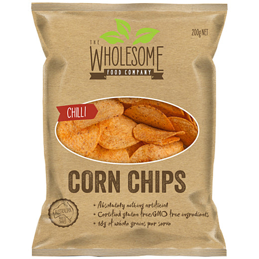 Satisfy your snack cravings with The Wholesome Food Company Corn Chips Chilli 200g! Bursting with zesty flavor and made from premium ingredients, these crunchy chips are perfect for guilt-free munching. Enjoy the bold taste of chili while knowing you're choosing a wholesome, quality snack. Elevate your snacking experience today!