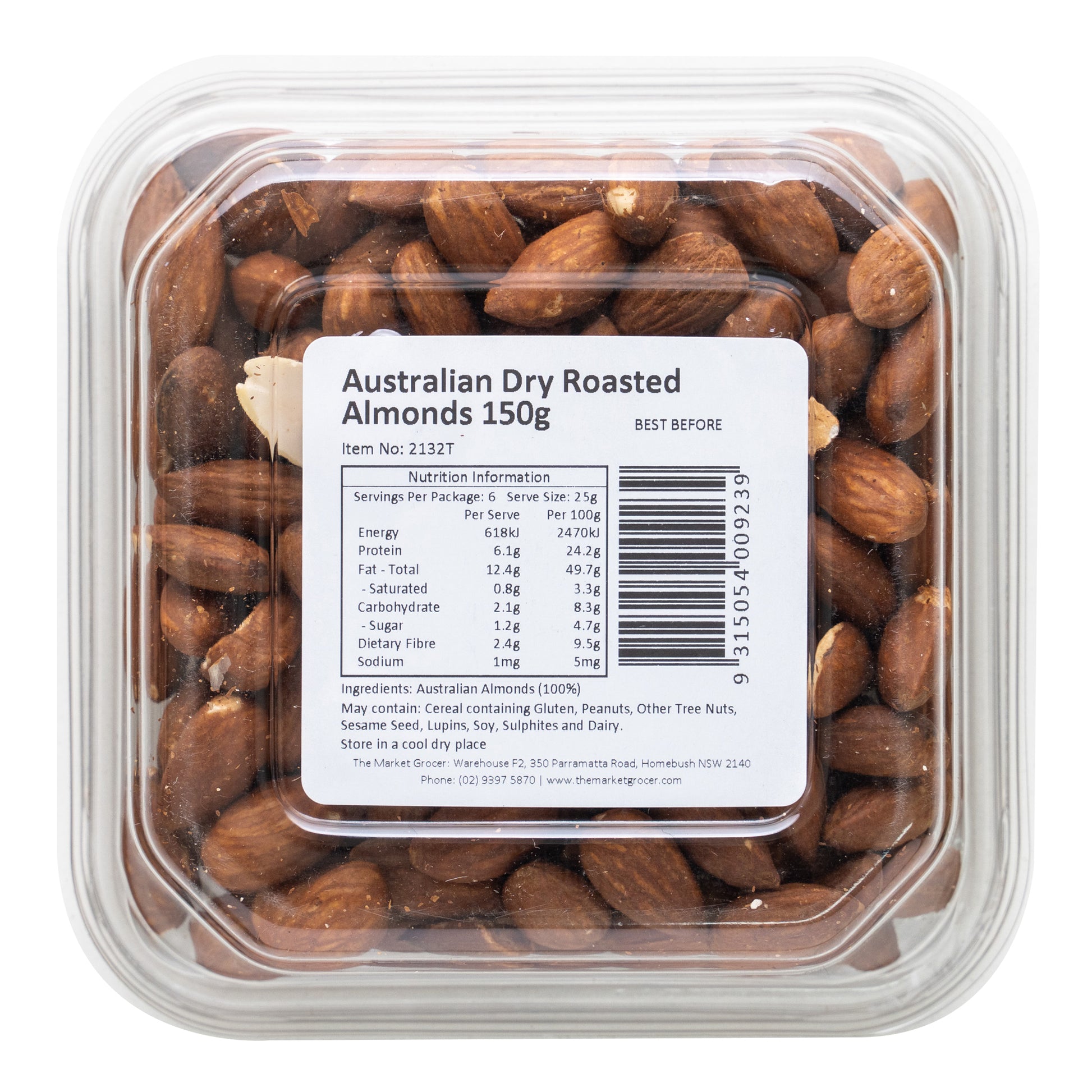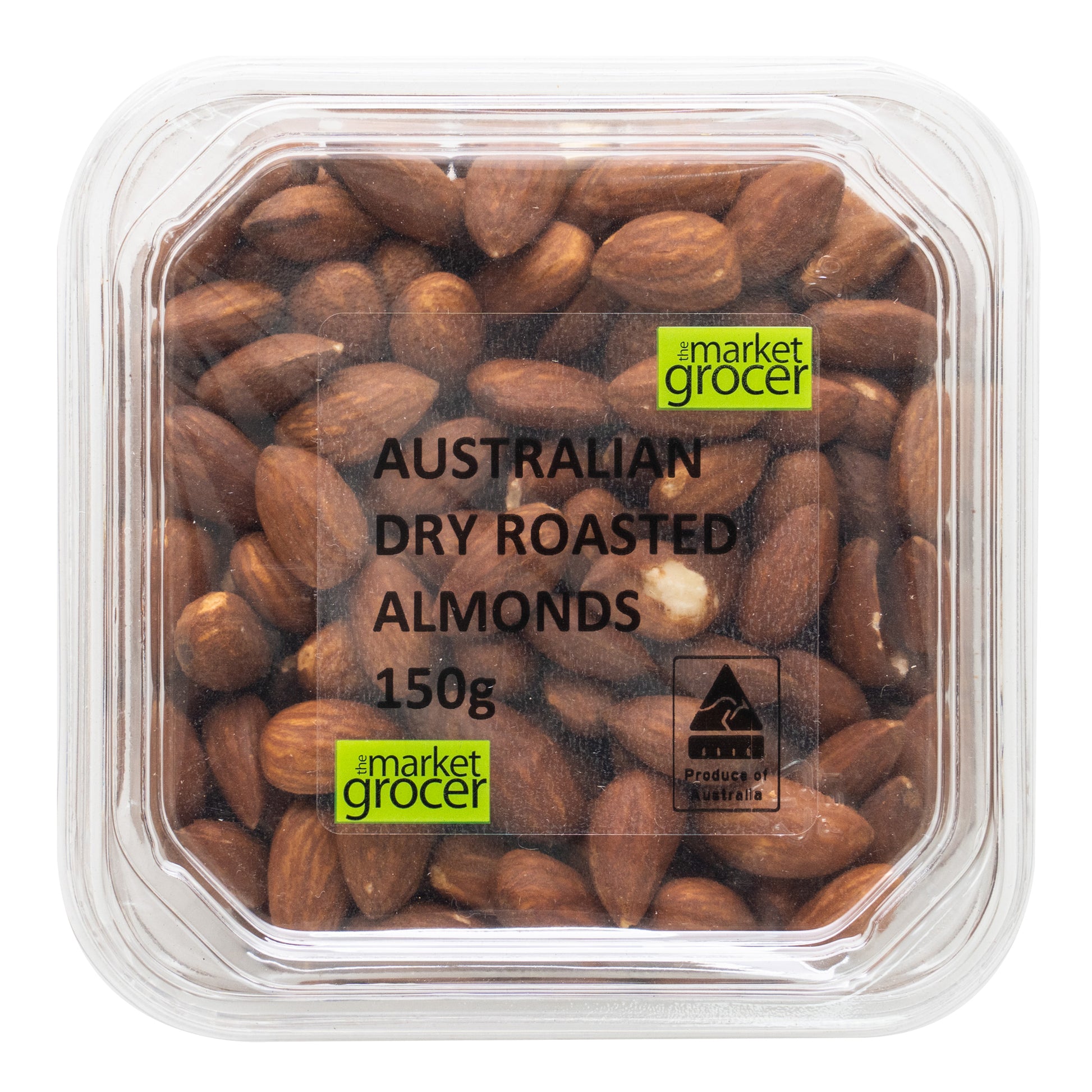 The Market Grocer Almonds Dry Roasted 150g: Deliciously crunchy and perfectly roasted almonds packed with nutrients. Ideal for snacking or adding a healthy crunch to your favorite dishes. Enjoy the premium quality and unbeatable taste of these dry roasted almonds.