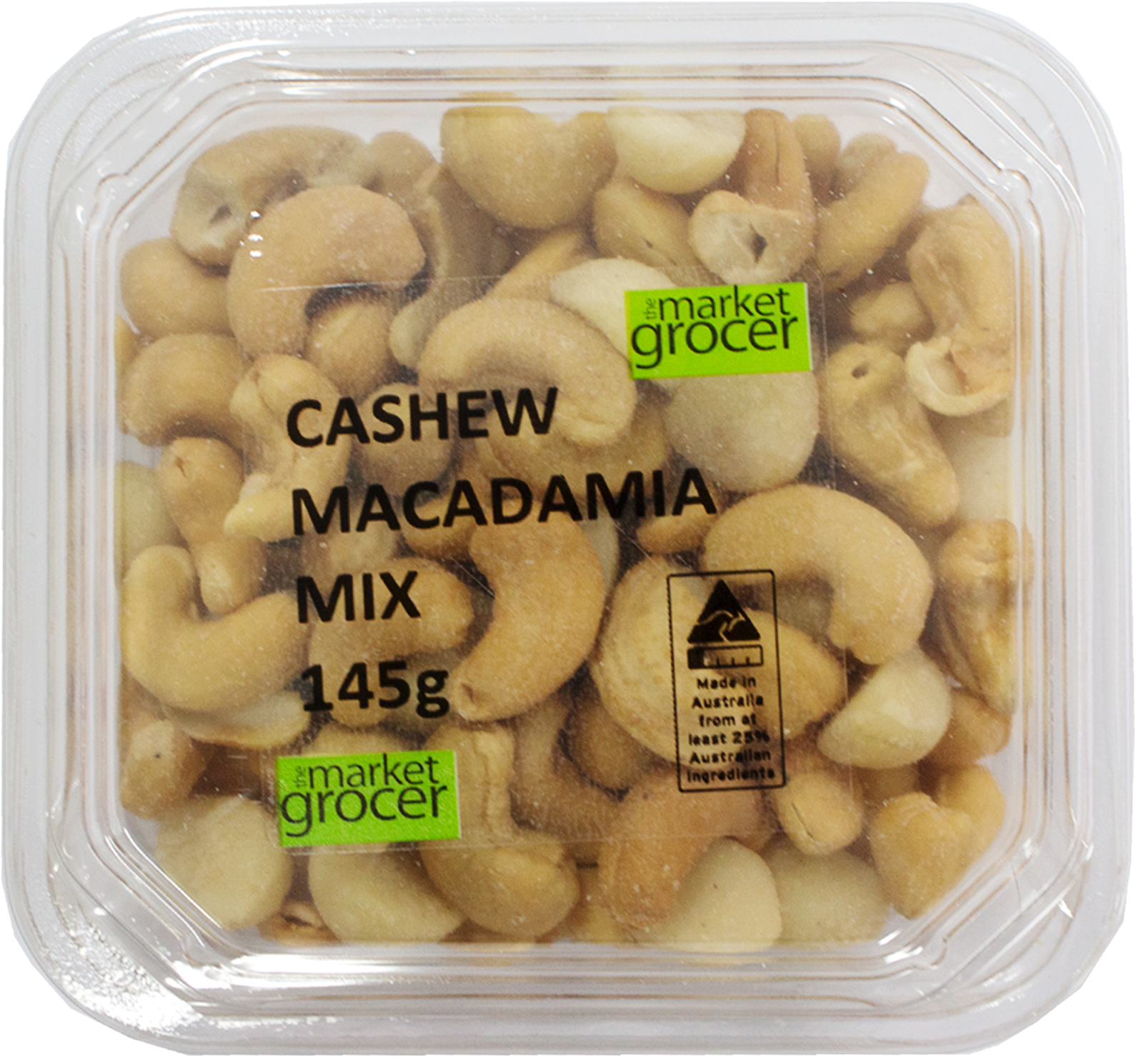The Market Grocer Cashew Macadamia Mix 145g offers a delicious blend of premium cashews and macadamia nuts, perfect for snacking or adding to your favorite recipes. Packed with protein, healthy fats, and a satisfying crunch, this mix is a nutritious and convenient option for on-the-go energy. Elevate your snacking experience with The Market Grocer Cashew Macadamia Mix 145g.