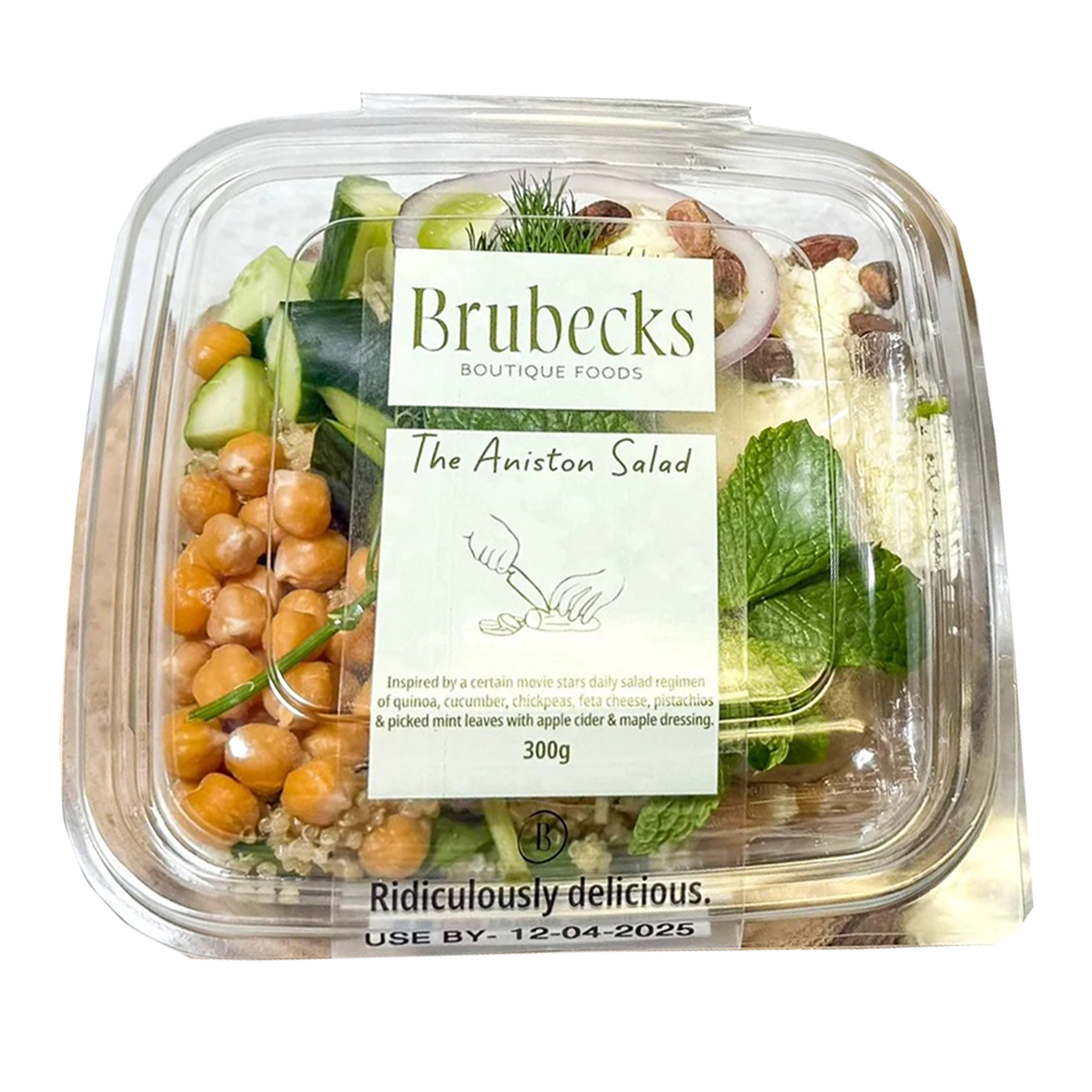 Brubecks The Aniston Salad 300g: Enjoy a delicious and nutritious blend of fresh greens, crunchy vegetables, and zesty dressing in every bite. Elevate your meal with this convenient and satisfying salad option that is perfect for a quick and healthy lunch or dinner. Order now for a flavorful and hassle-free dining experience!