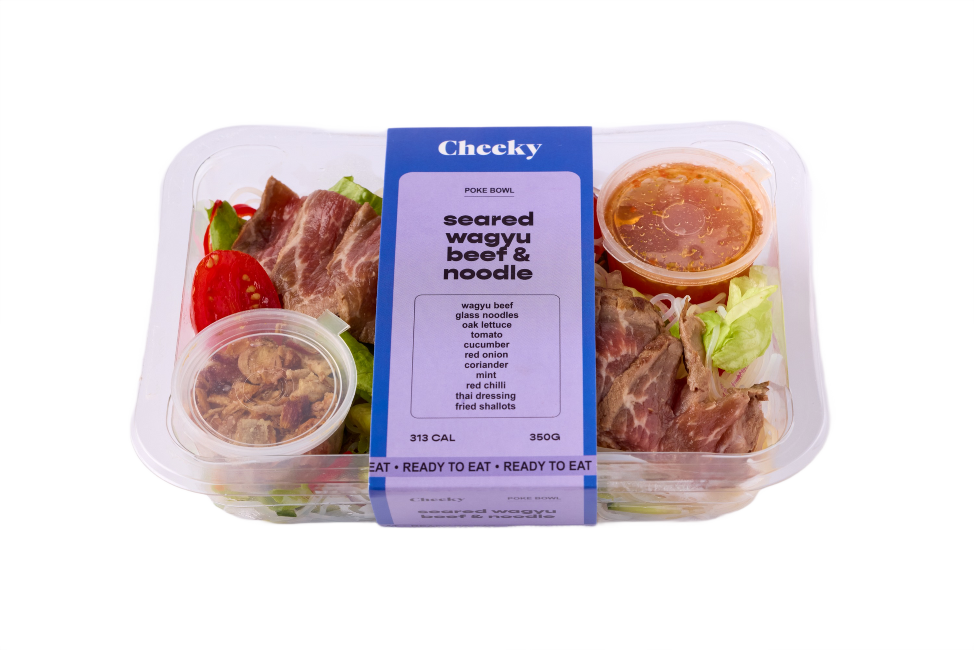 Indulge in the rich taste of seared Wagyu beef paired with delicate noodles in this 350g Cheeky Poke bowl. Complemented by fresh vegetables and a refined dressing, this dish offers a luxurious blend of flavors and textures, perfect for a sophisticated and satisfying meal.