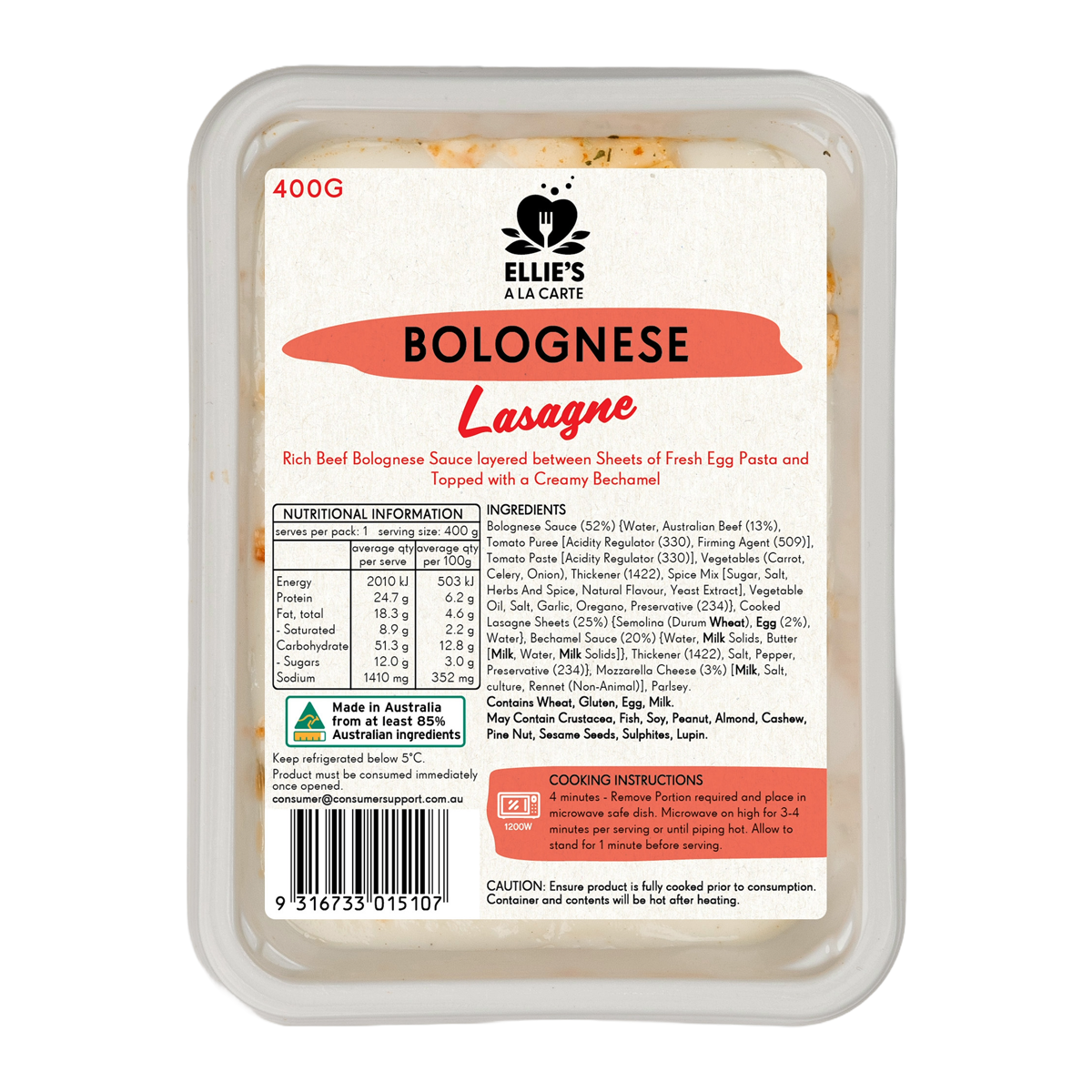 Ellies Ala Carte Lasagne 400g