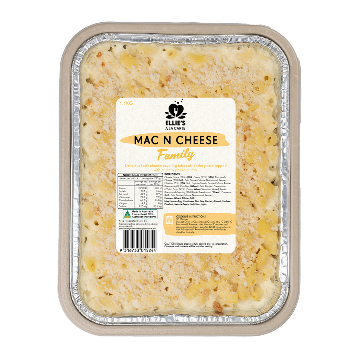 Ellies Ala Carte Mac and Cheese 1kg is the ultimate comfort food solution for busy individuals craving a delicious and satisfying meal. Indulge in creamy, cheesy goodness with every bite, made with high-quality ingredients for a premium dining experience. Elevate your dinner routine with this convenient and flavorful dish that is sure to please your taste buds. Enjoy the convenience of a quick and easy meal without compromising on taste. Perfect for families, students, and anyone looking for a convenient and tasty meal option.