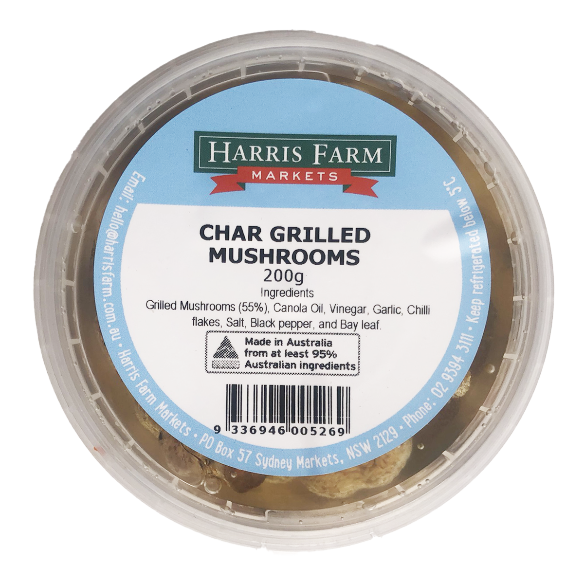 Harris Farm Chargrilled Mushrooms 200g: Elevate your dishes with our premium, smoky-flavored mushrooms. Packed with nutrients and ready to enjoy in minutes. Perfect for salads, pastas, and more. Order now for a deliciously convenient meal upgrade.